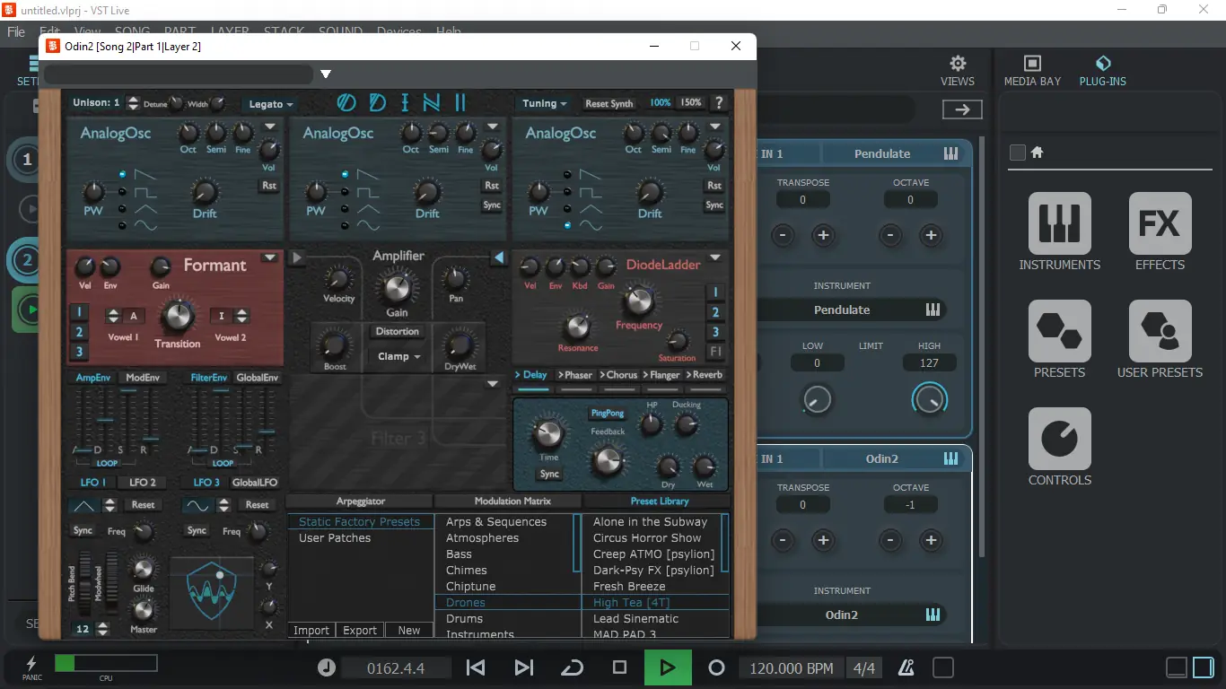 - Широкий набор виртуальных инструментов и встроенный секвенсор