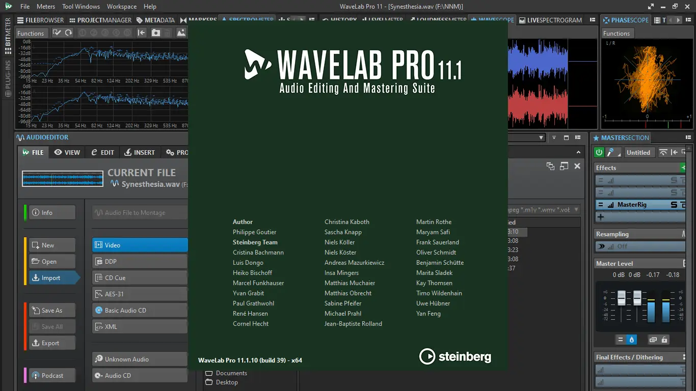 WaveLab — универсальный аудиоредактор и мастеринг-инструмент, который уже более 25 лет служит надежным решением для профессионалов в сфере обработки звука. Его многофункциональность и качество звука позволяют работать с файлами высокого разрешения, восстанавливать и редактировать звукозаписи, создавать авторские проекты для Audio CD и DVD. Благодаря расширенной архитектуре программа легко дополняется новыми функциями через плагины и встроенные инструменты, что делает её незаменимой в студийной работе и у любителей. Работа под управлением 64-битных операционных систем Windows на оборудовании с различными MIDI-контроллерами обеспечивает высокую производительность и стабильность.