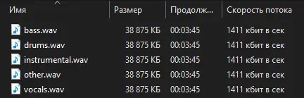 - Создание отдельной дорожки instrumental.wav, исключающей вокальные партии.