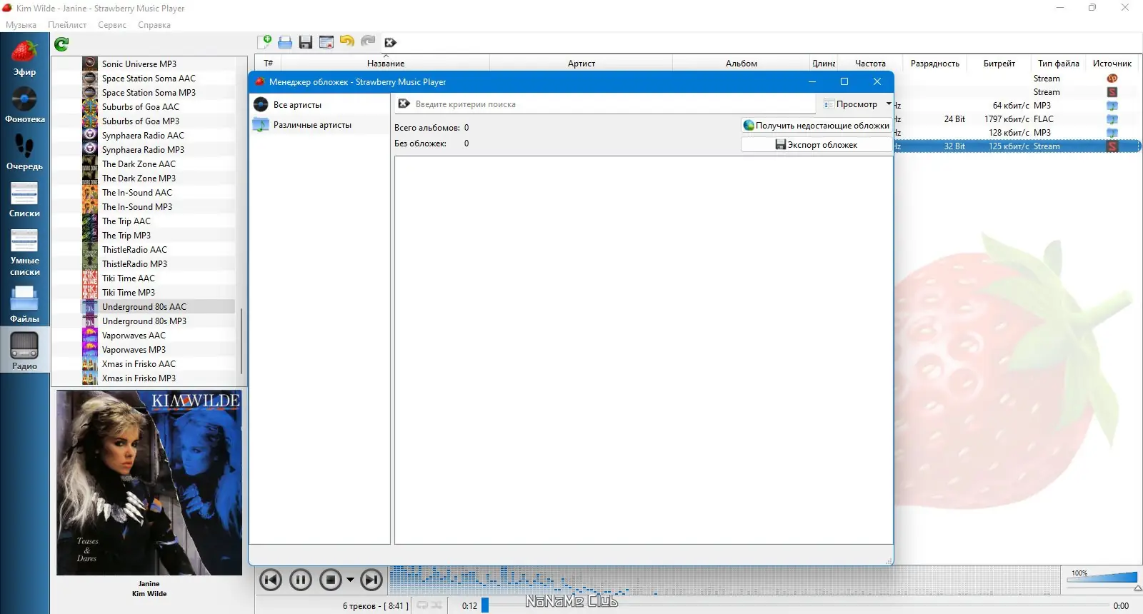 Strawberry — это универсальный музыкальный плеер и органайзер коллекций, предназначенный для ценителей качественного звука и организованной медиатеки. Программа создана на базе популярного аудиоплеера Clementine и обладает расширенным функционалом для воспроизведения, управления и оформления музыкальных файлов.