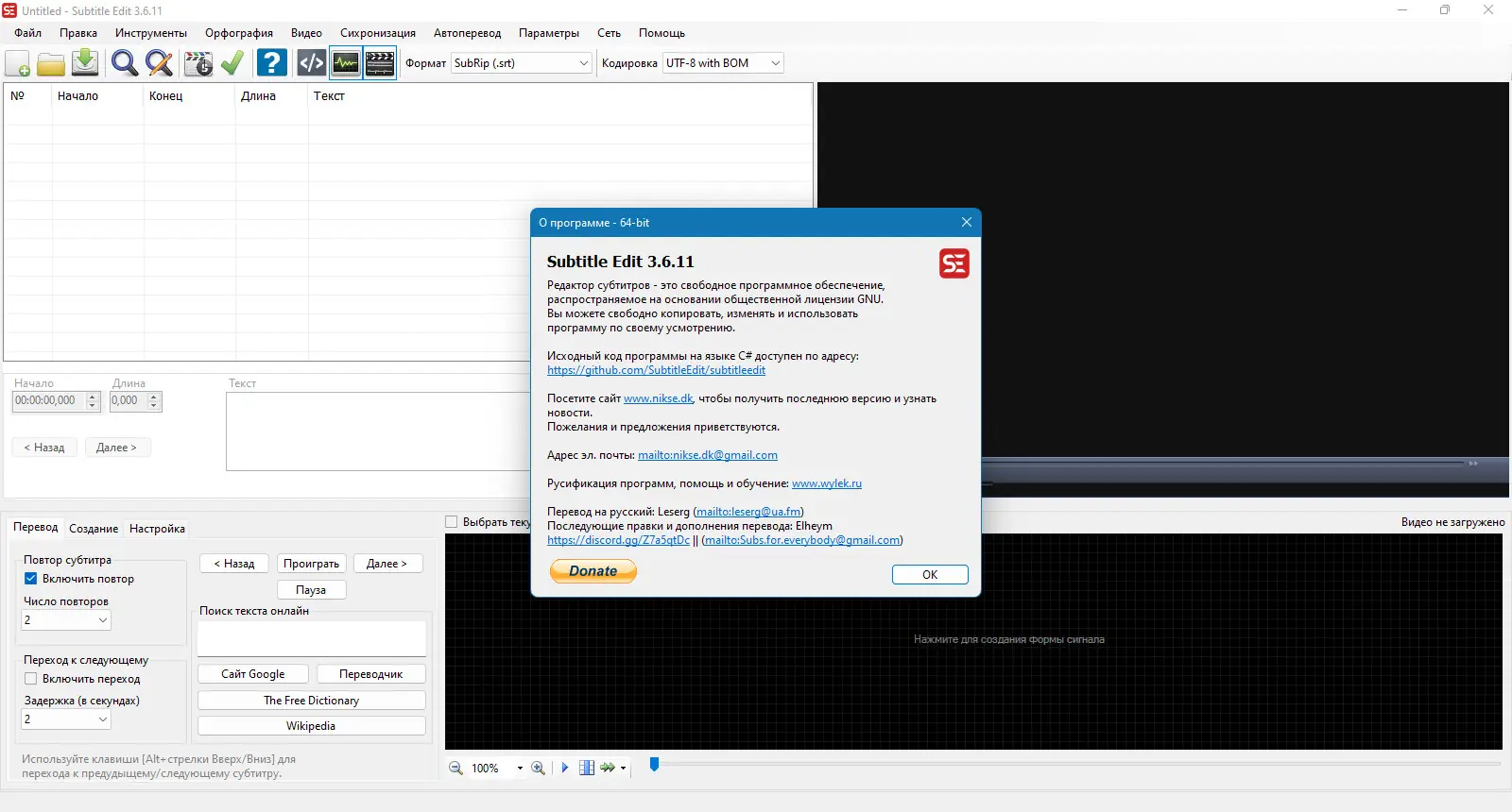 Subtitle Edit – это мощный редактор субтитров, предназначенный для профессиональной и любительской работы с видеоконтентом. Позволяет синхронизировать, создавать и редактировать субтитры в различных форматах, облегчая работу с большими объемами видео и субтитровых файлов. Благодаря удобному интерфейсу и широкому спектру функций, программа подходит как для строки начинающих, так и для опытных пользователей, обеспечивая высокую точность и качество обработки. Можно пользоваться бесплатно, простым скачиванием или через торрент, что особенно актуально для тех, кто ищет решение без необходимости приобретения лицензии. Совместимость с Windows 7, 8/8.1, 10 и 11 (x32/x64 Bit) делает её универсальным инструментом для большинства ПК. Также существует версия для mac, что расширяет возможности работы на различных платформах.