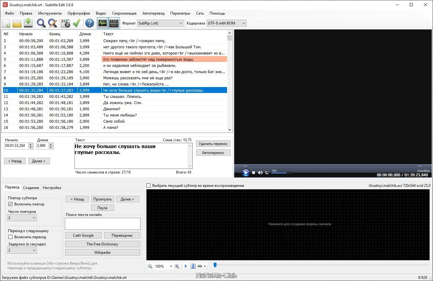 Subtitle Edit — мощный редактор субтитров, созданный для профессиональной обработки и синхронизации субтитров с видеофайлами. Бесплатная и совместимая с различными платформами программа позволяет легко создавать, редактировать и конвертировать субтитры различных форматов.