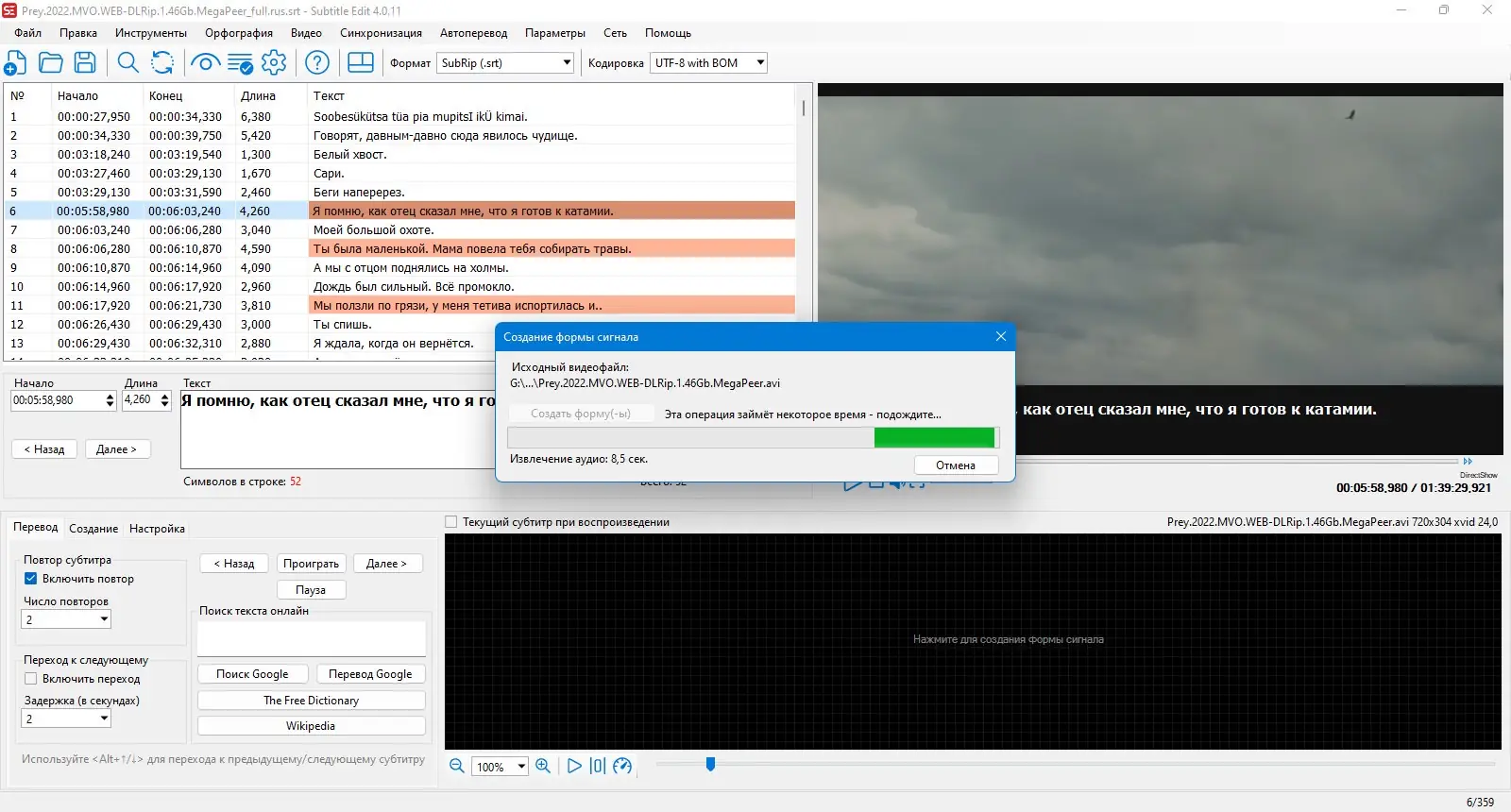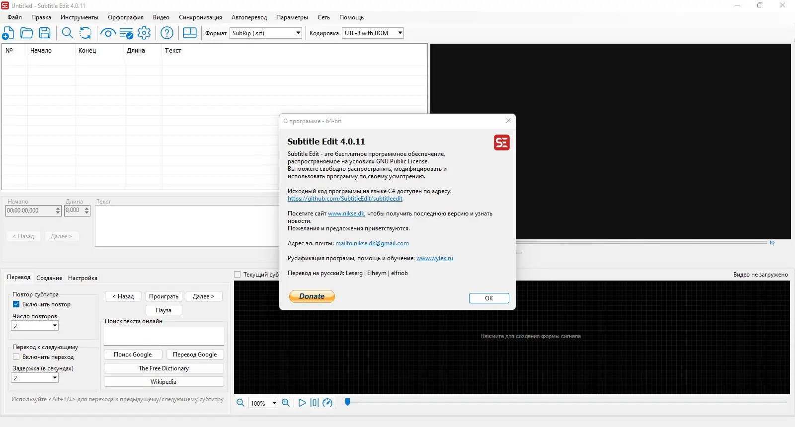 Данная редакторская утилита предназначена для работы с субтитрами любых форматов. При помощи Subtitle Edit вы сможете точно настроить временные параметры, импортировать субтитры (в том числе с распознаванием текста методом OCR), объединять и разбивать файлы, переводить их на другие языки с помощью встроенной функции автоматического перевода через Google Translate. Кроме того, программа позволяет извлекать звуковые дорожки из видеофайлов, редактировать кодировки и частоту кадров для обеспечения максимально точной синхронизации. Встроенный проигрыватель использует DirectShow, VLC Media Player и MPlayer, что обеспечивает комфортное предварительное просмотр видео и работу с субтитрами в реальном времени.