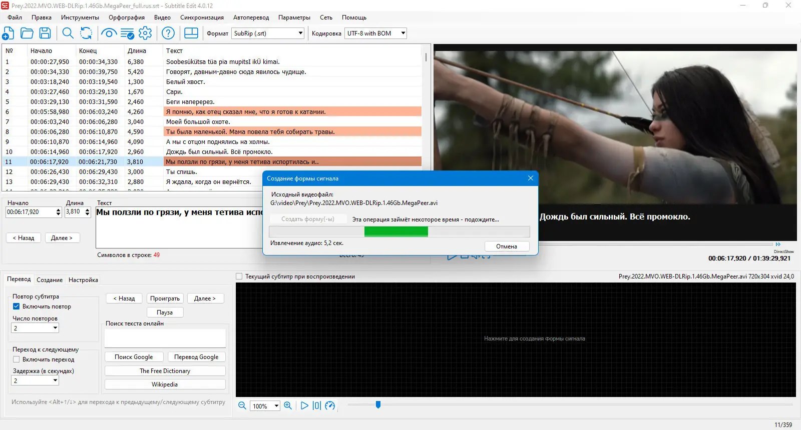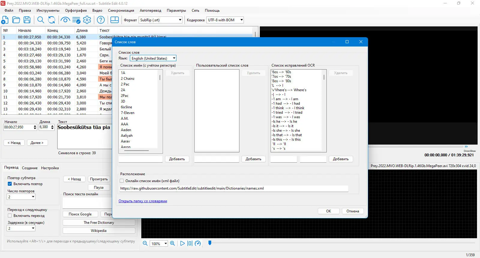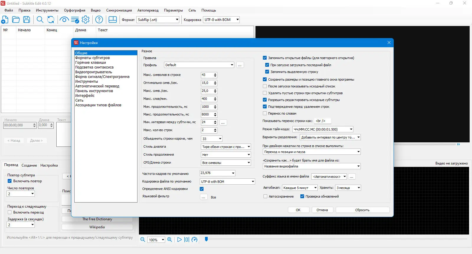 - Настройка и исправление ошибок в субтитрах, управление таймингом и нумерацией.