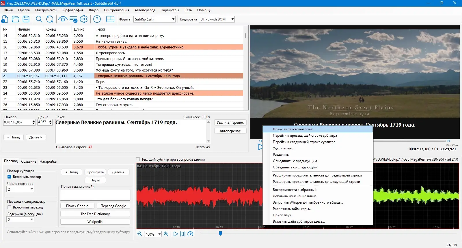 Subtitle Edit — это мощный редактор субтитров, который позволяет легко синхронизировать тексты с видеофайлами, создавать новые субтитры и переводить их с помощью встроенных инструментов автоматического перевода. Поддержка широкого спектра форматов делает программу универсальным решением для видеомонтажа и субтитрового дизайна. Возможность импортировать субтитры посредством OCR, объединять и разбивать их, а также настраивать кодировку и частоту кадров позволяет добиться высокой точности и удобства работы. Кроме того, программа умеет извлекать звуковые дорожки, проигрывать видео с помощью популярных проигрывателей и экспортировать результаты в различных форматах.