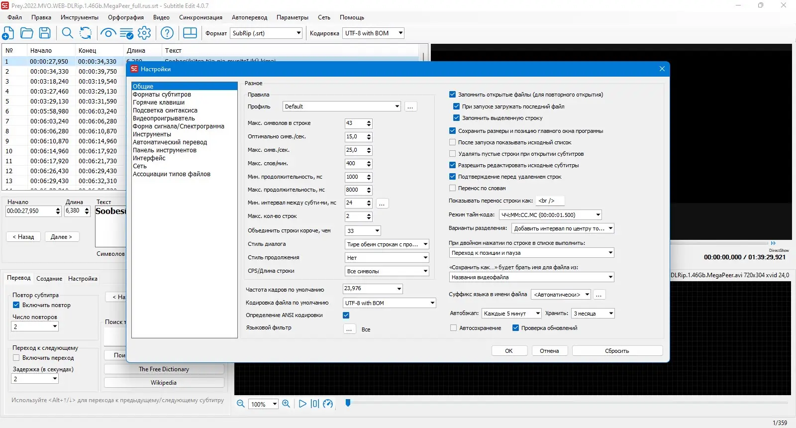 - Автоматическая синхронизация субтитров с видео, настройка времени начала, конца и скорости отображения.