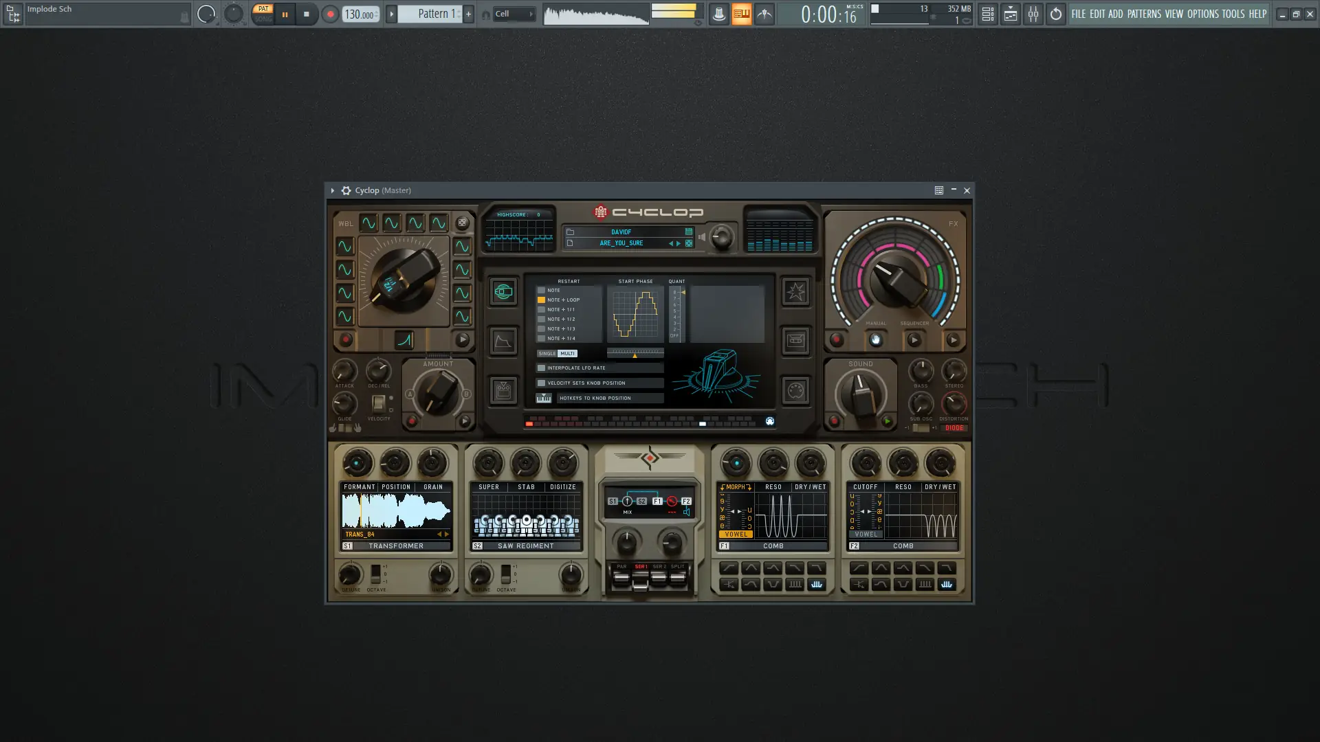 - 6 типов синтеза: Saw Regiment, Analog Sync, FM, Transformer, Spectromat, Phase Stressor