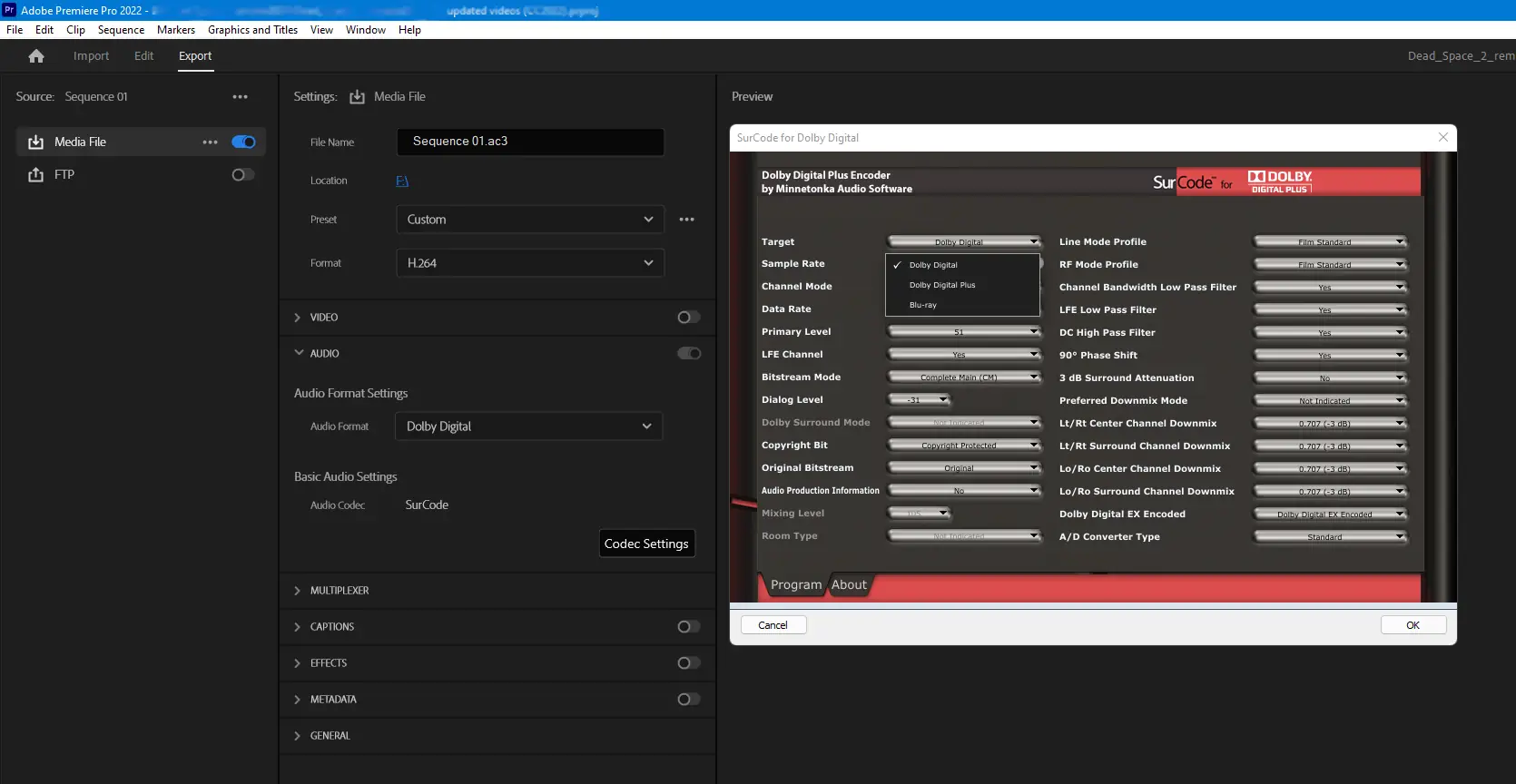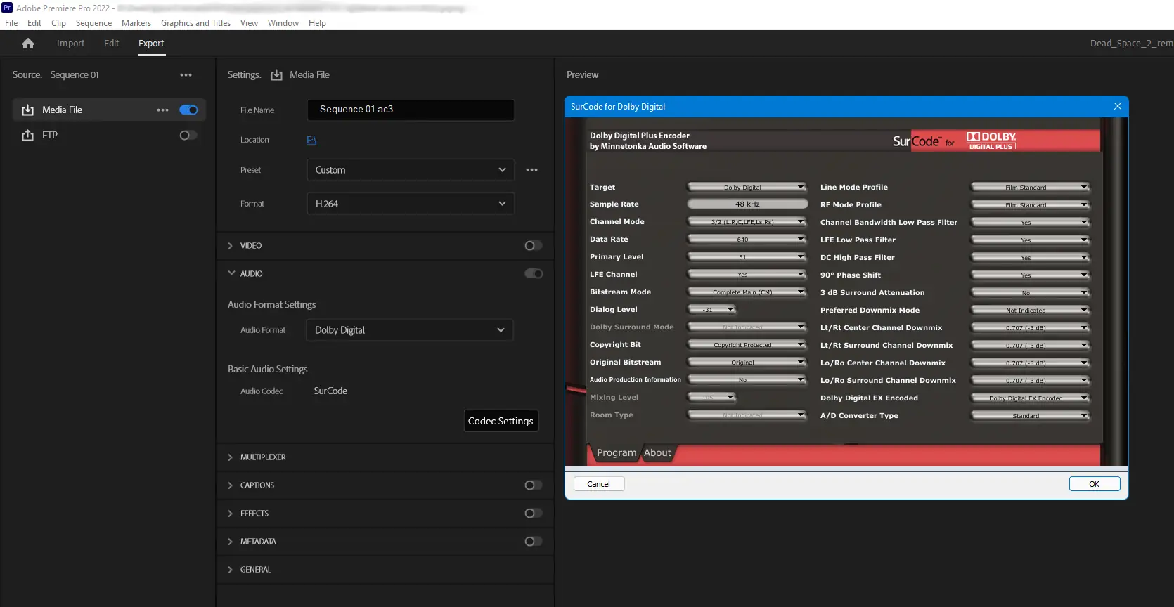 Плагин SurCode Dolby Digital для продуктов Adobe семейства Creative Cloud позволяет вернуть поддержку звука Dolby Digital, которая была убрана из последних версий Adobe Premiere Pro и Media Encoder.