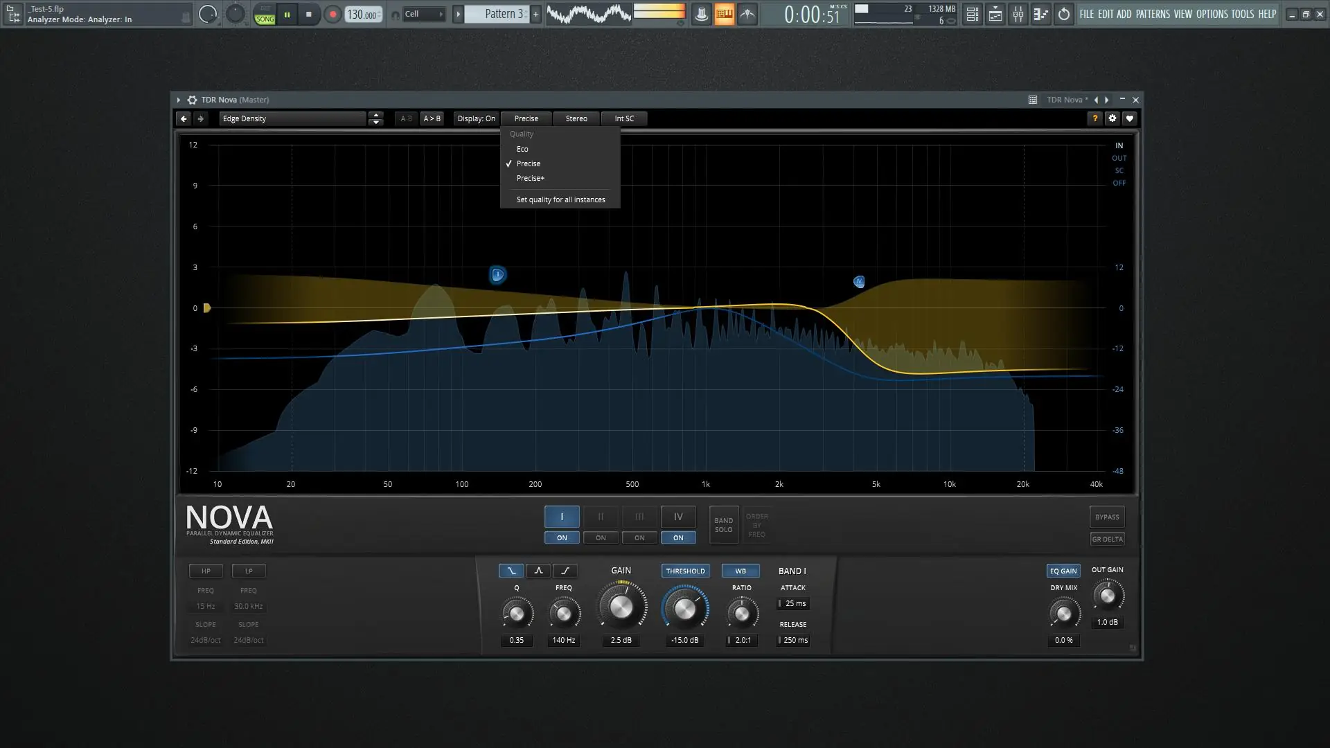 ТDR — Nova — это параллельный динамический эквалайзер, представляющий собой мощный инструмент для профессиональной обработки звука. В основе его разработки лежит знакомая схема параметрического эквалайзера, дополненная полнофункциональной секцией динамики, что позволяет охватывать широкий спектр задач — от повышения плотности мастеринга до четкости ударных и устранения шипения. Благодаря интуитивно понятному интерфейсу с дисплеем перетаскивания WYSIWYG и классическими рукоятками пользователь быстро добивается нужных результатов. Эффективная реализация четырех полос динамического эквалайзера, дополнительные фильтры и функции равной громкости позволяют адаптировать обработку под любые требования. NOVA отлично подходит для обработки мастер-каналов, барабанных шин и дубляжей, обеспечивая прозрачность и насыщенность звучания без дополнительных сложностей.