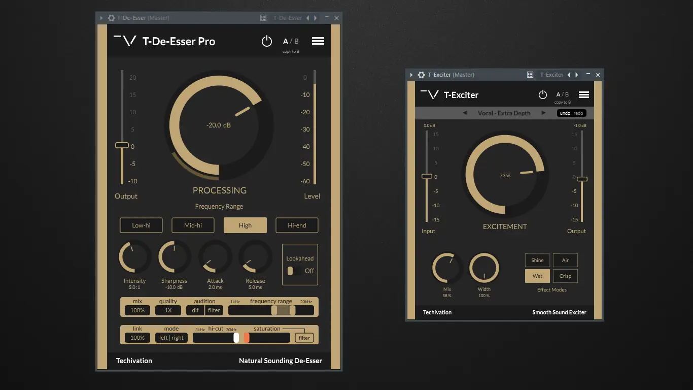 Techivation — это набор высококлассных аудио-плагинов, созданных командой специалистов в области музыкального производства, звукорежиссуры и дизайна интерфейсов. Каждый инструмент направлен на упрощение рабочих процессов, добавление живости, ширины и мощности звуку. Мы верим в постоянное развитие и внедрение инновационных решений для достижения лучших результатов. Наши плагины помогут вам придать вашим трекам профессиональное звучание, не тратя при этом много времени на ручную настройку.