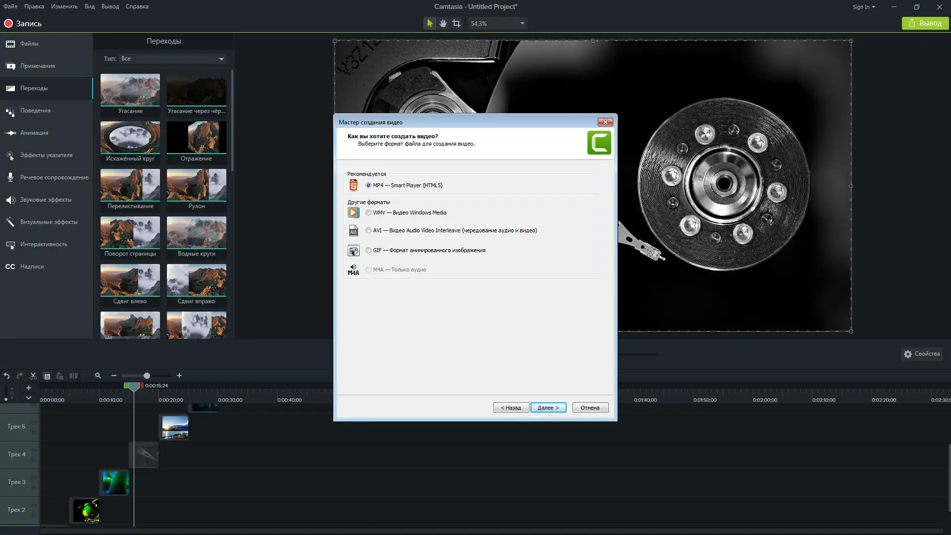 Встроенные проигрыватели и поддержка форматов SWF, AVI, FLV, MOV, WMV, RM, GIF, CAMV позволяют легко экспортировать созданные видео для различных целей. Возможность скомпилировать видео в самостоятельный exe-файл с встроенным проигрывателем делает продукт универсальным решением для презентаций и демонстраций. Camtasia также позволяет накладывать эффекты, работать с кадрами и создавать сжатое, высокоточное видео для обучения и технической поддержки.