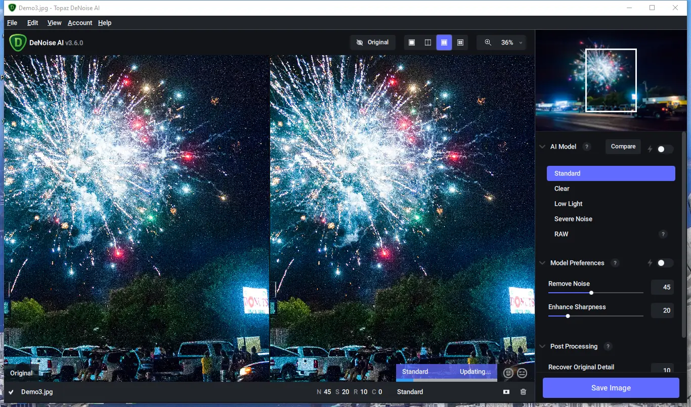 Программа позволяет создавать высококлассные снимки без необходимости использования дополнительного оборудования или специального освещения, что делает её незаменимой для фотографов, работающих в ночных условиях, при высокой ISO и в быстро меняющихся ситуациях. Инновационные технологии Deep Learning, основанные на анализе миллионов изображений, позволяют более точно определить и устранить шум, сохраняя при этом максимальную детализацию. В отличие от привычных решений, DeNoise AI восстанавливает детали, анализируя изображение целостно, а не на пиксельном уровне, что дает максимально естественный результат. Для тех, кто хочет добиться идеальной пиксельной четкости, мы предлагаем лучшее качество шумоподавления на рынке.