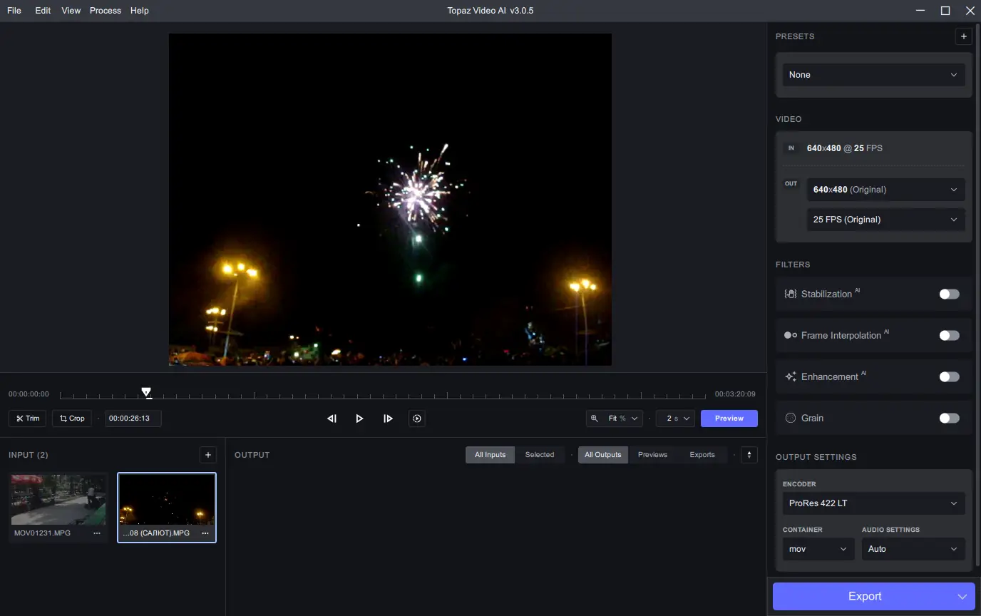 Topaz Video AI — это инновационная программа, основанная на глубоком обучении, которая позволяет максимально эффективно восстанавливать и масштабировать видео. Обученная на тысячах видеокадров, нейронная сеть анализирует исходные материалы, выявляя и экспрополируя скрытые детали, что обеспечивает высокое качество финального результата. Независимо от исходного разрешения — будь то домашние фильмы, DVD, или видеоклипы — программа преобразует их в четкие и подробные видео с разрешением до 8K. Это решение идеально подходит для создателей контента, профессиональных видеоредакторов и обычных пользователей, желающих вернуть качество старых или низкокачественных материалов.