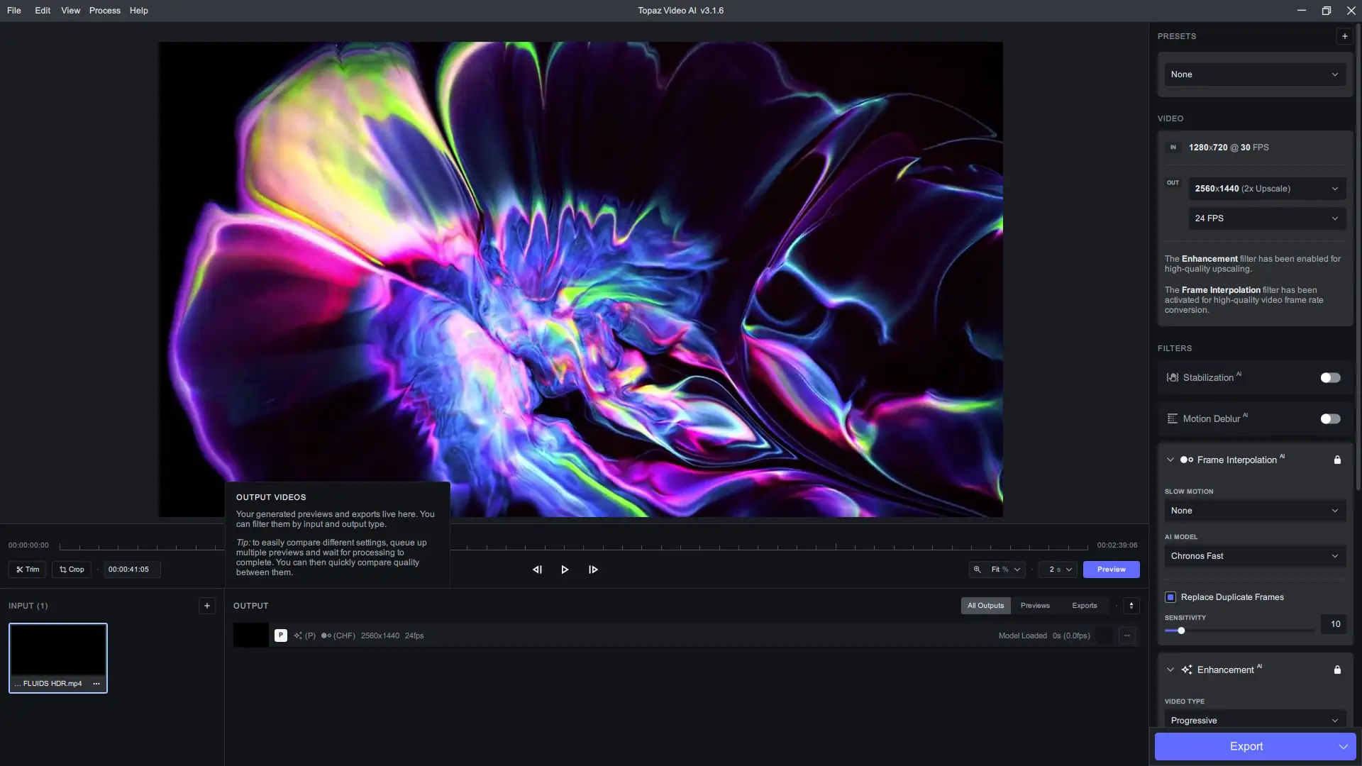 Использование ИИ технологий делает данный продукт уникальным в своем роде, позволяя добиваться превосходных результатов по увеличению качества видео. Он легко интегрируется в рабочий процесс и обладает понятным интерфейсом, что важно для быстрого освоения и эффективной работы.