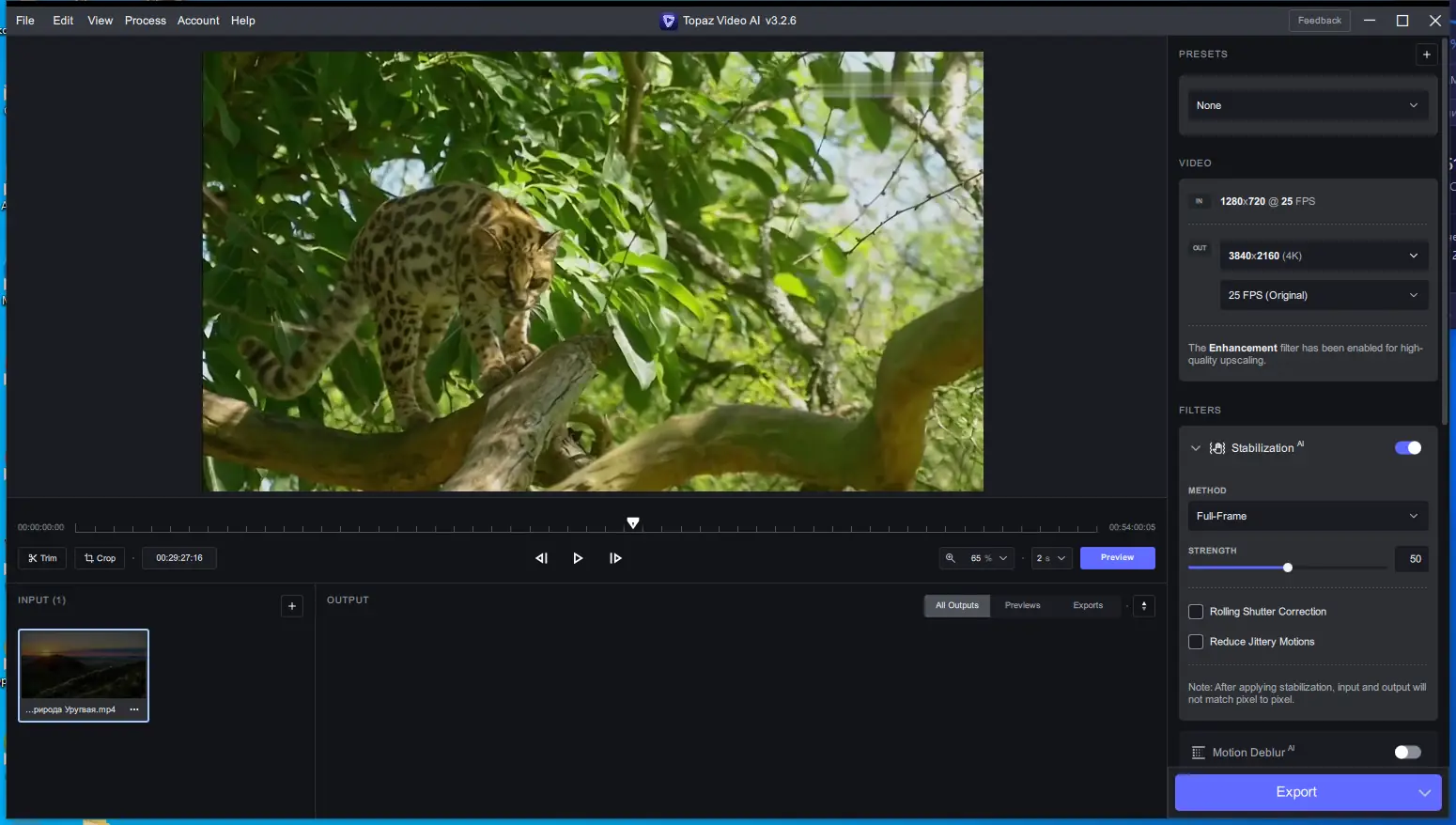 Topaz Video AI – это современное программное обеспечение, созданное для улучшения и увеличения видео. Обученная на тысячах видеороликов, нейросеть анализирует входные данные и объединяет информацию из нескольких кадров, чтобы создавать высокоразрешенные изображения с точной детализацией и плавным движением. Особенно эффективно для восстановления старых домашних фильмов, VHS-конверсий, видео с низким разрешением, а также для профессиональных видеопроектов. Благодаря использованию методов глубокого обучения программа обеспечивает качество вывода, превосходя многие аналоги, и делает возможным создание кадров до 8K. Простота использования позволяет быстро выполнять обработку, не требуя специальных навыков или длительных настройок.
