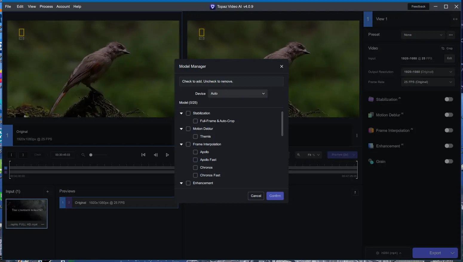 - Настройте необходимые параметры и приступайте к обработке видео