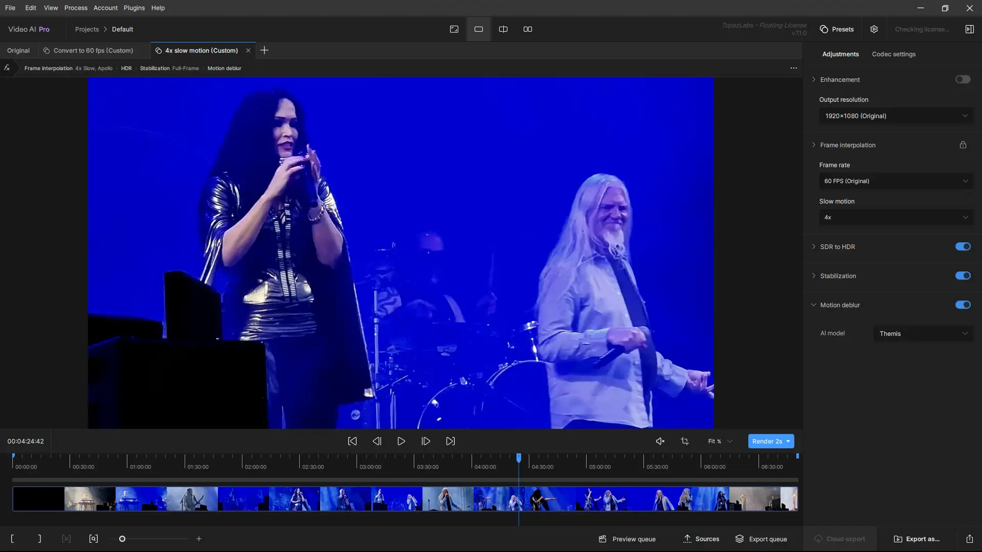 Topaz Video AI – это инновационное решение для увеличения и восстановления качества видео с использованием технологий искусственного интеллекта. Благодаря обученной нейронной сети, программа способна преобразовать низкокачественные видеоматериалы, такие как домашние фильмы или низкое разрешение с DVD или SD, в четкие кадры с разрешением до 8K. Это позволяет добиться высокой детализации и плавного воспроизведения, сохраняя анимацию движения и уменьшив артефакты. Интуитивно понятный интерфейс и простота использования делают работу с программой доступной как для профессиональных монтажеров, так и для любителей, желающих улучшить качество своих видеозаписей.