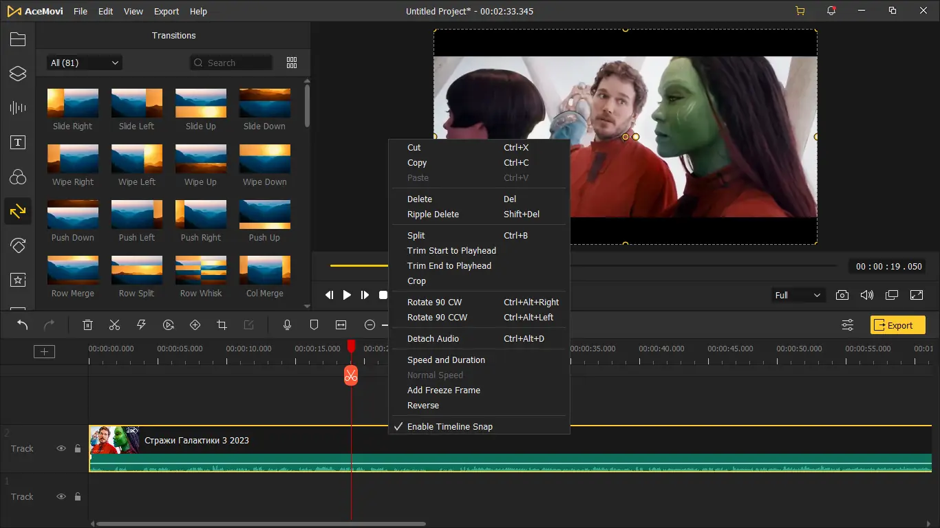 - Добавление и настраивание эффектов, фильтров и переходов для повышения привлекательности ролика.