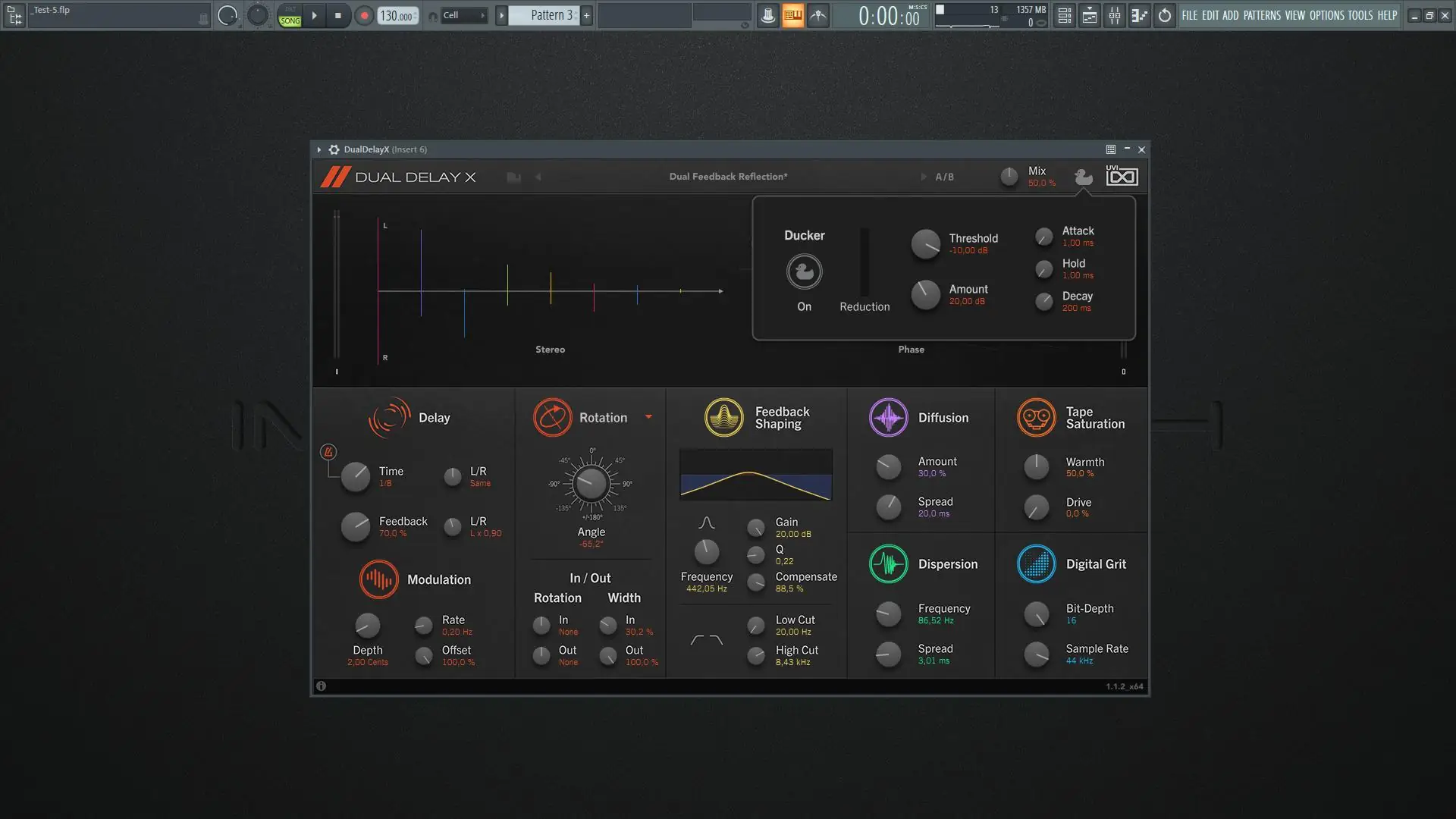 Dual Delay X предлагает уникальный подход к пространственной задержке, основанный на использовании унитарных матриц, что позволяет достигать более длинных и сложных дискретных эхо с высокой стабильностью и насыщенностью звука. Встроенные фильтры, модулы обработки, дисперсия и зернистость позволяют точно формировать тон и характер задержки, создавая эффекты, ранее недоступные из-за сложности реализации. Всё управление осуществляется с одной интуитивно понятной панели, что обеспечивает быстрый доступ к пресетам и возможность создания индивидуальных настроек без лишних усилий. Внутренние библиотеки пресетов и возможности транзиции между эффектами позволяют быстро достигать нужного звучания, а визуализация стереофонического поля помогает контролировать эффект в режиме реального времени.