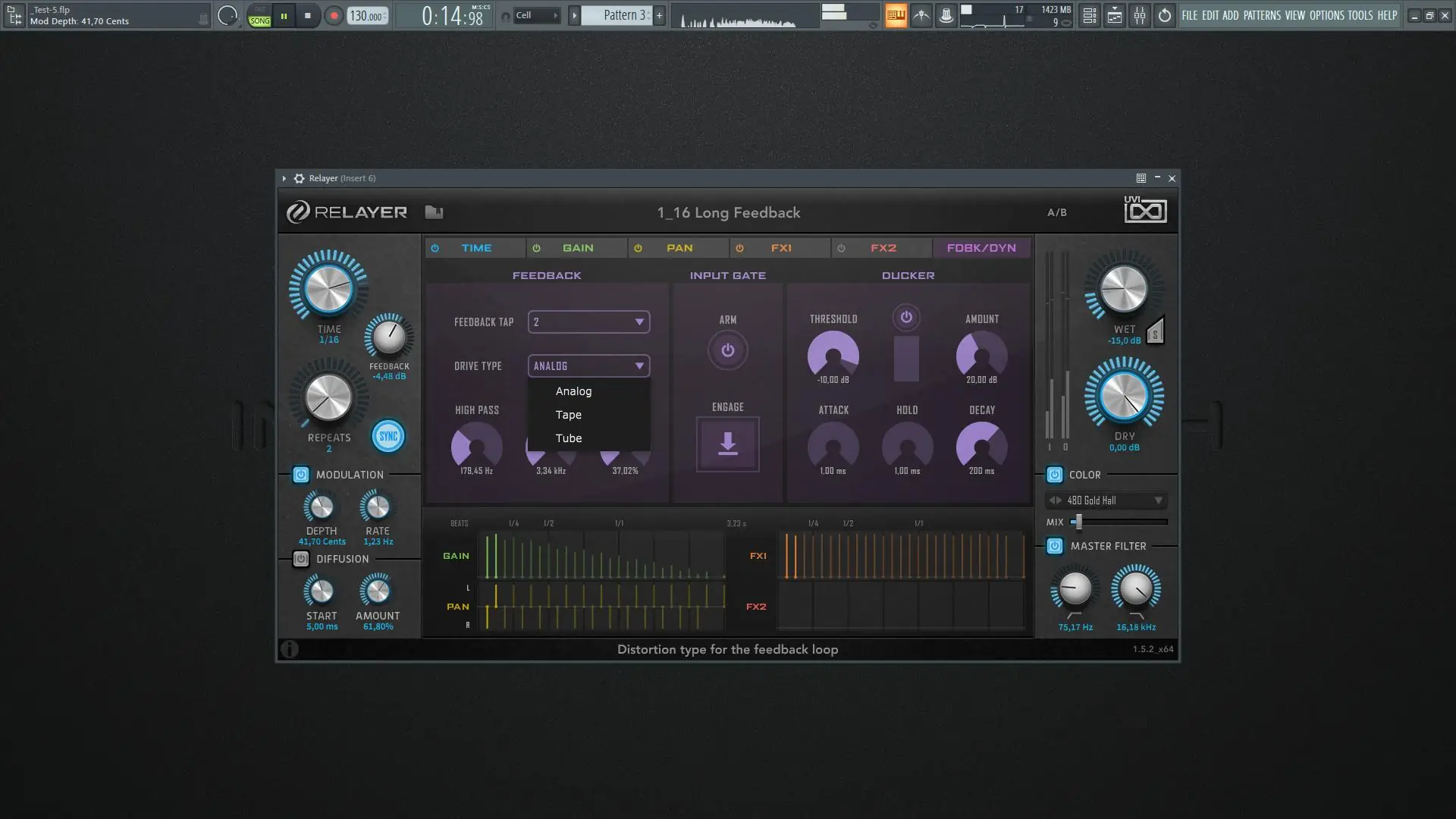 В основе RELayer лежит переменный механизм multi-tap, обеспечивающий до 32 линий задержки. Время задержки устанавливается с помощью стандартных параметров или синхронизировано с хостом, после чего модулируется с помощью элементов управления качанием и деформацией, что позволяет получать эффекты в стиле прыгающего мяча. Вы можете открыть редакторы модуляции для каждого сегмента, управляя временем, усилением, панорамой и мультиэффектами, а также рисовать собственные последовательности или пользоваться встроенными пресетами. Встроенная система гейтов и фильтров позволяет точно управлять обработкой сигнала, а уникальные секции Color с предустановками на основе высококачественных IR дают возможность легко менять характер звука, добавляя эффект лафай или имитируя разные усилители и приборы.