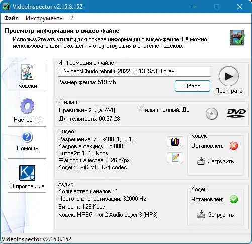 Данное программное обеспечение разработано для того, чтобы упростить работу с видеофайлами путём предоставления развернутой информации о содержимом. В процессе использования вы узнаете о формате контейнера, характеристиках видео и аудио потоков, а также о наличии и состоянии установленных кодеков. Благодаря широким возможностям анализа, программа помогает устранить проблемы с воспроизведением и обеспечивает совместимость мультимедийных файлов с различными плеерами и системами.