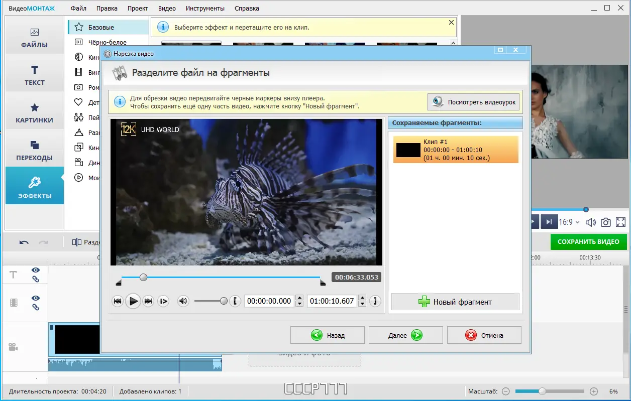 ВидеоМОНТАЖ — это удобный и доступный видеоредактор, который позволяет создавать эффектные видеоролики буквально за несколько минут. Идеальное решение для домашних пользователей и начинающих монтажёров благодаря простому интерфейсу и широкому набору инструментов.