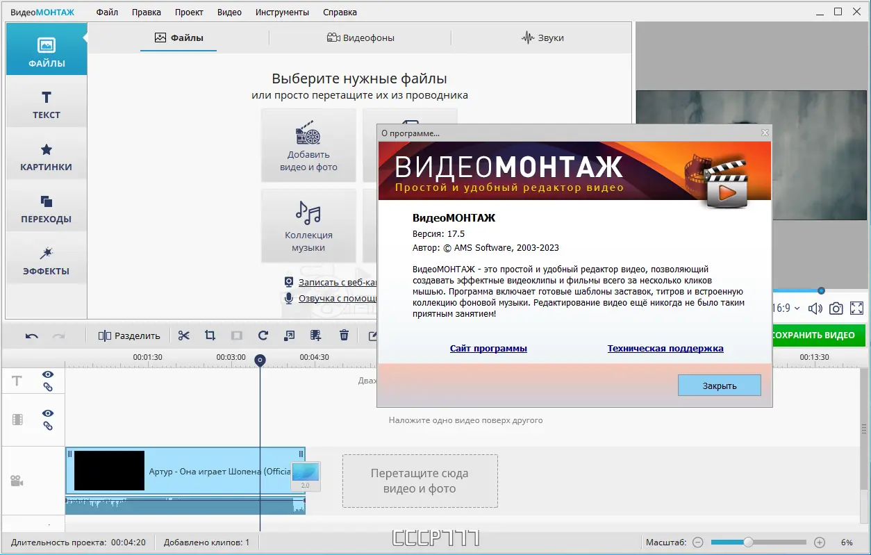 ВидеоМОНТАЖ — это отличный выбор для тех, кто ищет простое и одновременно функциональное решение для видеомонтажа. Программа обладает широким набором инструментов и поддержкой популярных форматов, что обеспечивает высокий уровень удобства и качества полученного видео.