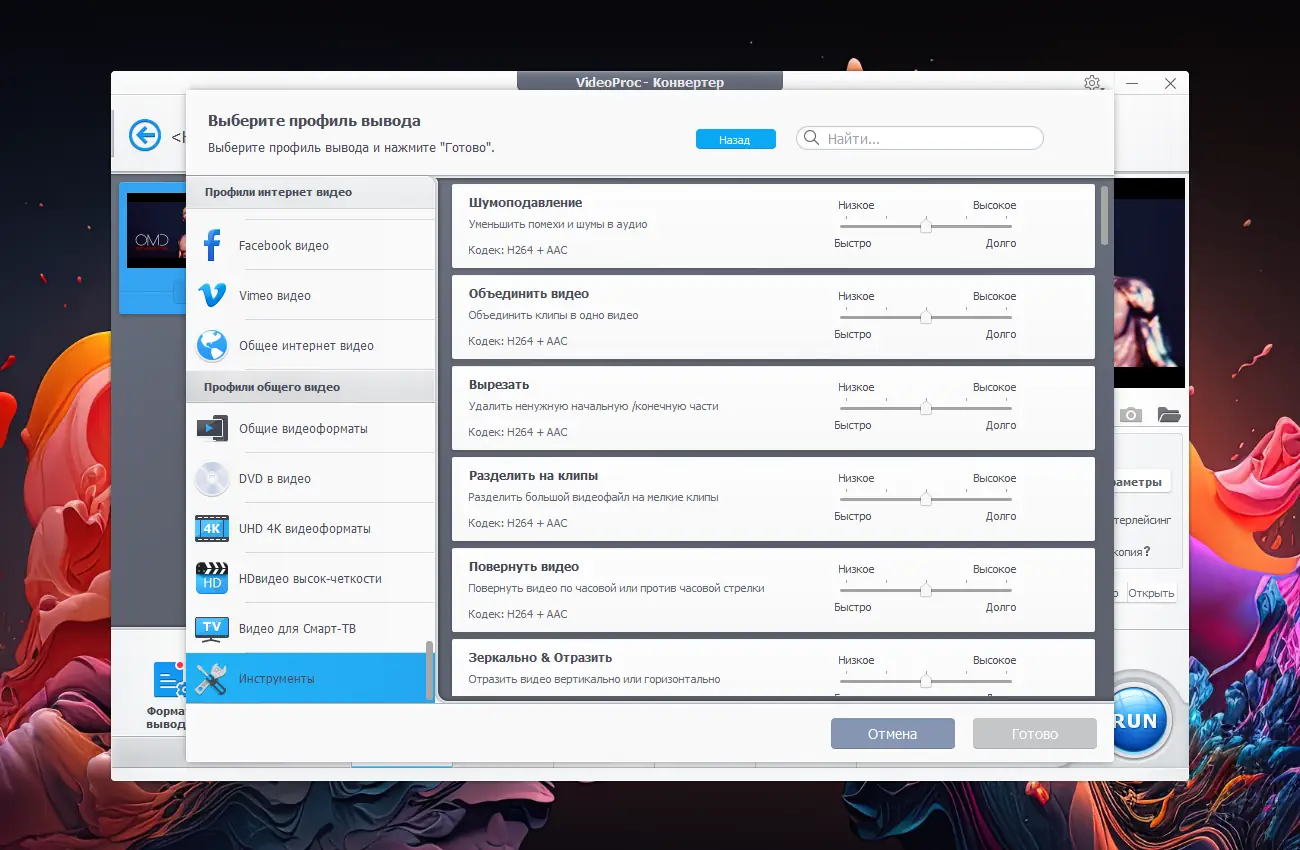 VideoProc Converter объединяет в себе широкий функционал и высокую скорость работы за счет аппаратного ускорения, что делает его особенно привлекательным для пользователей, работающих с 4K и HD видео. Надежность и мультиязычная поддержка обеспечивают комфортное использование на русском и других языках.