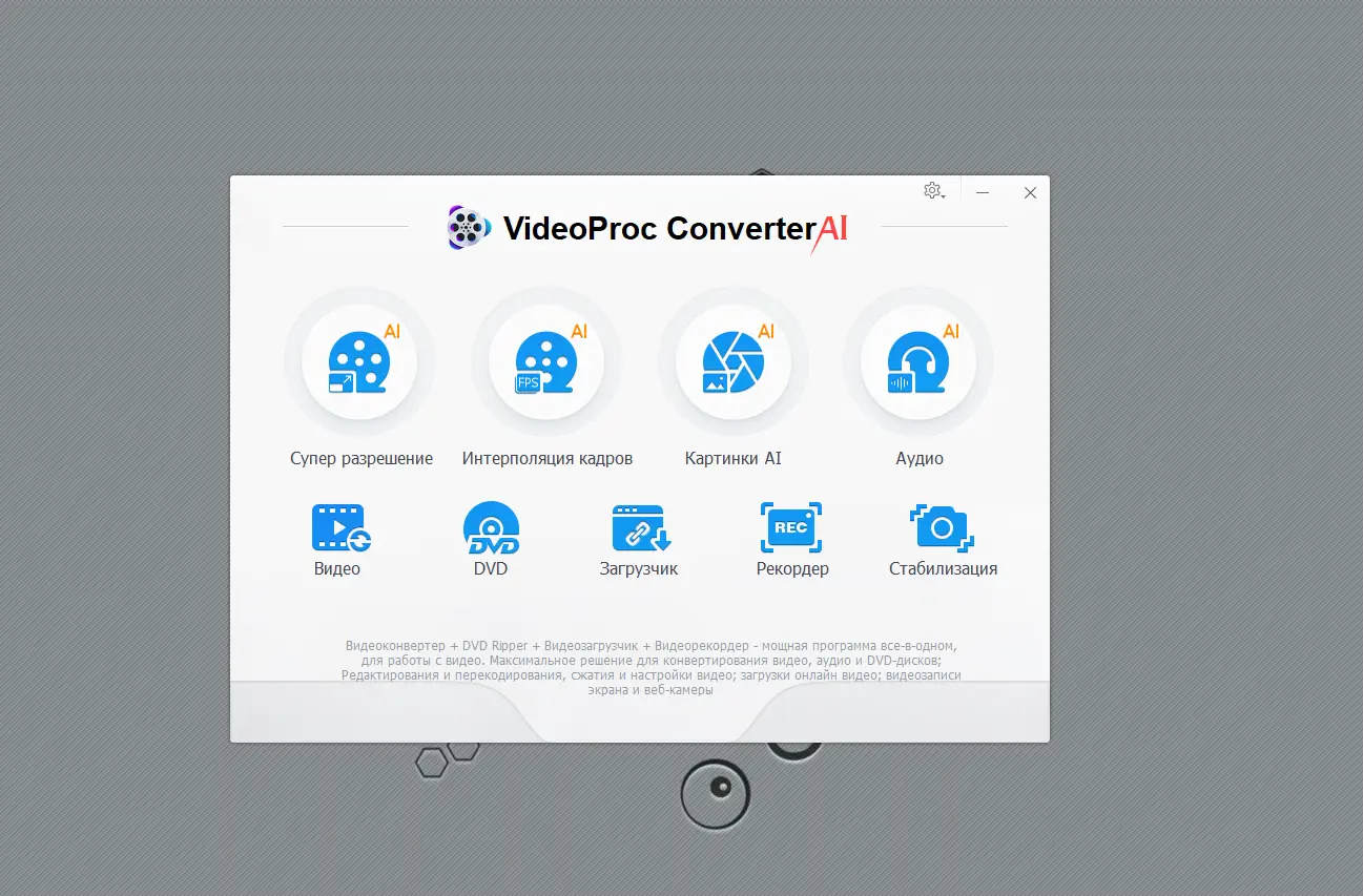 VideoProc Converter — это мощная и многофункциональная программа все-в-одном для обработки видео, представляющая собой усовершенствованную версию WinX HD Video Converter Deluxe. Она предназначена для редактирования, вырезания, кадрирования, слияния, настройки, конвертирования и сжатия видео в разрешении 4K с полным аппаратным ускорением. В отличие от стандартных решений, программа обеспечивает высокую скорость обработки за счёт технологий GPU-ускорения и поддержки таких платформ, как Intel QSV, NVIDIA CUDA/NVENC и AMD.