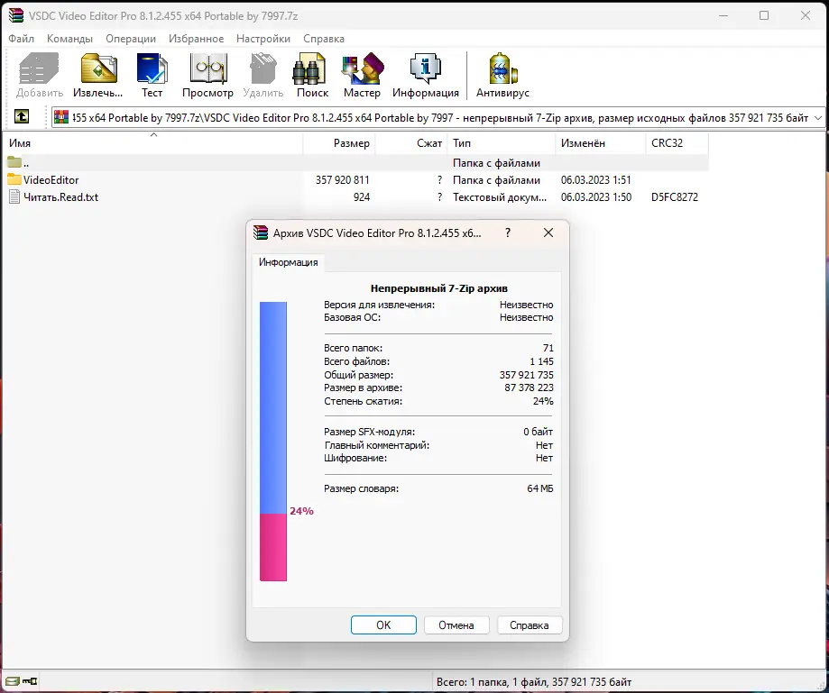 - Распакуйте архив на диск с достаточным свободным пространством и поддержкой файлов большого размера.