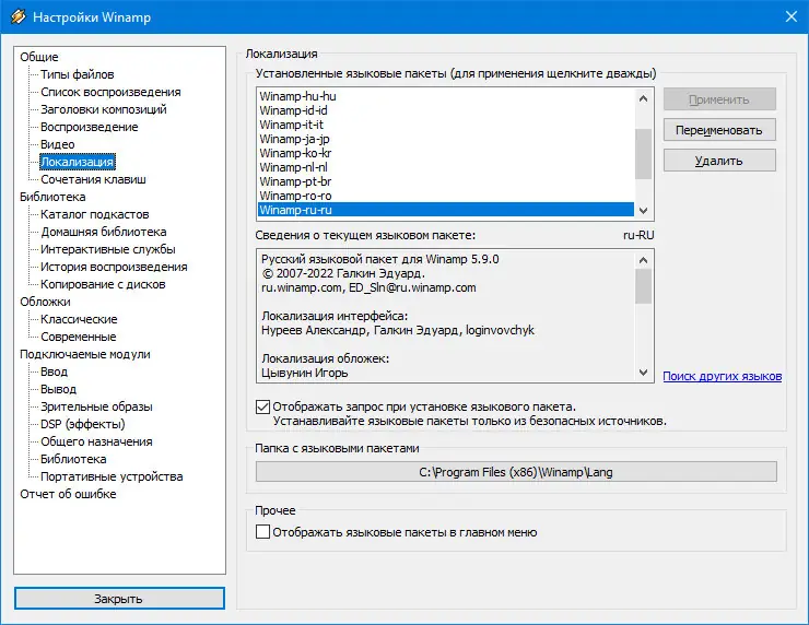 - Встроенные модули визуализации и широкий набор настроек проигрывателя