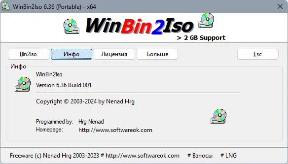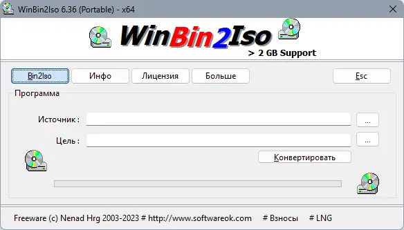 Данная утилита позволяет конвертировать образы компакт-дисков и DVD из BIN формата в ISO за считанные минуты. Разработчики заявляют, что программа без труда работает с файлами размером более 2 ГБ, что особенно актуально для игровых образов и больших данных. Простота использования и небольшие ресурсы делают её востребованной среди пользователей, ищущих качественный и бесплатный инструмент для преобразования образов. Благодаря портативной версии, запуск утилиты возможен без инсталляции. WinBin2Iso подходит для операционных систем Windows 7, 8/8.1, 10 и 11 на архитектуре x32 и x64 Bit.