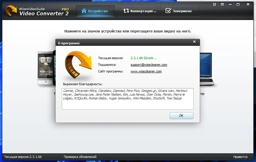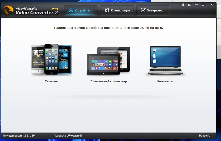 Wise Video Converter — мощная программа для быстрой и удобной конвертации видеофайлов в необходимые форматы одним нажатием или перетаскиванием. Идеально подходит для подготовки видео для различных устройств: смартфонов, планшетов и ПК, обеспечивая универсальную совместимость и высокое качество обработки.
