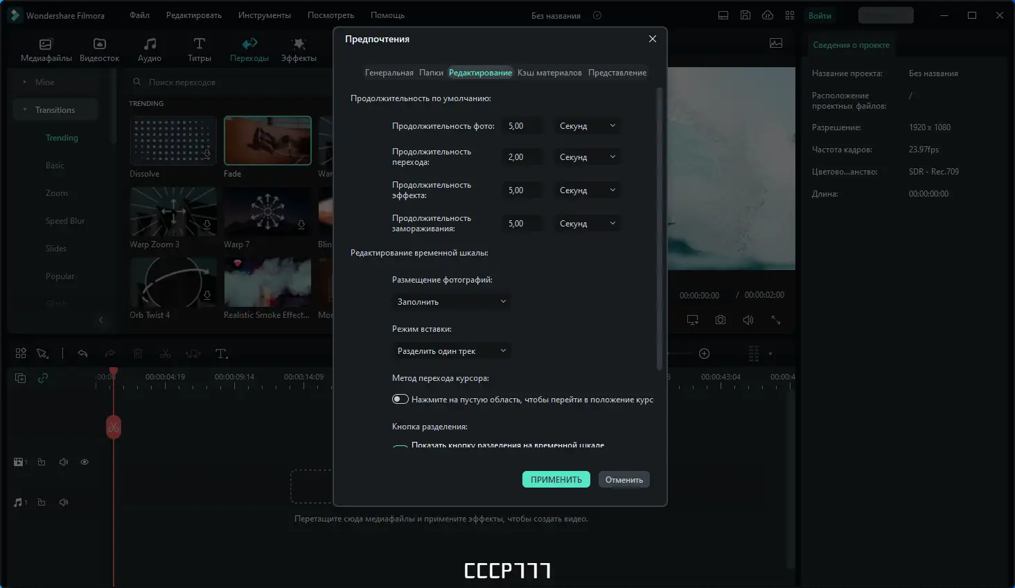 - Использование профессиональных и творческих эффектов: фильтров, переходов и эффектов движения.