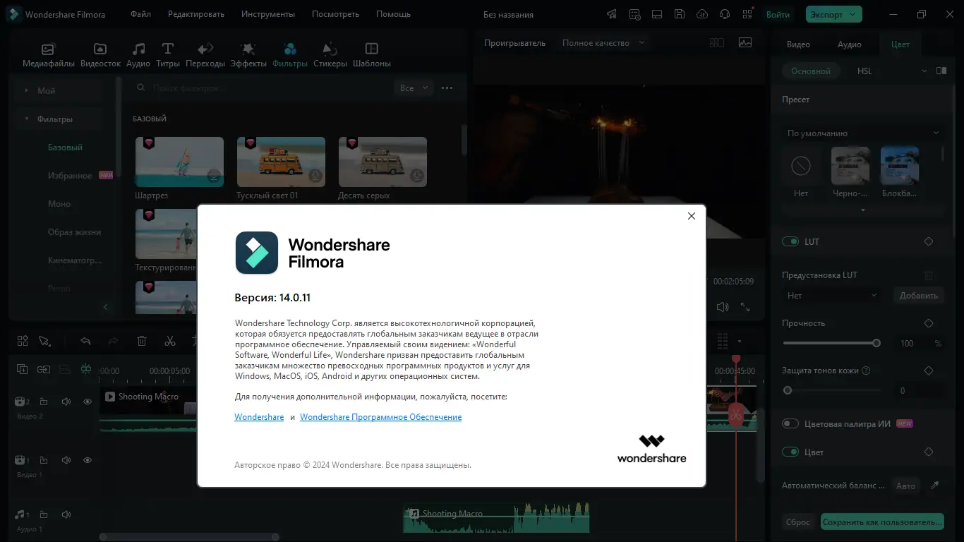 Wondershare Filmora содержит все необходимые инструменты для быстрого и качественного монтажа видео. Благодаря интуитивному интерфейсу и широкому набору функций, программа идеально подходит как новичкам, так и опытным видеомонтажерам. Вышедшая в версии 14, она предлагает обновлённые возможности, повышенную производительность и расширенные ресурсы. Программа работает на операционных системах Windows 7, 8/8.1, 10 и 11 как в версиях x32, так и x64 Bit. Возможности монтажа включают автоматическую синхронизацию ритма, разделение экрана, настройку ключевых кадров и многое другое. Вы можете создавать как простые ролики, так и сложные проекты, используя эффекты, маскирование, зеленый экран, автоматическое изменение размеров и профессиональные цветовые инструменты. Wondershare Filmora позволяет удобно редактировать аудио, добавлять титры, фильтры и переходы, а также экспортировать видео в популярных форматах или загружать напрямую на социальные сети и видеохостинги.
