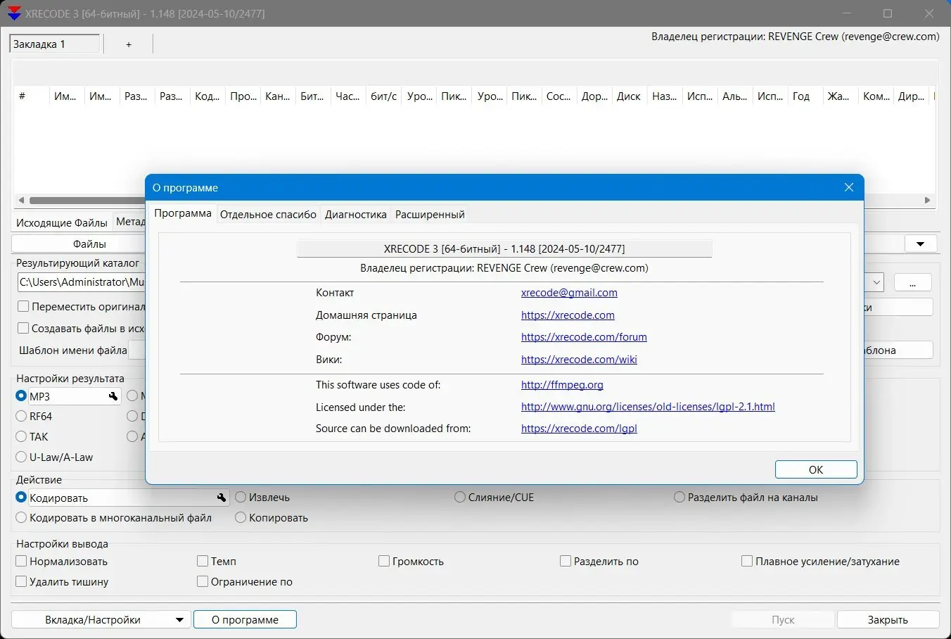 Xrecode — популярный мощный аудио конвертер, разработанный для быстрого и простого преобразования различных аудио- и видео-данных. Интуитивный интерфейс с drag and drop позволяет легко добавлять файлы для обработки, а поддержка большинства популярных форматов обеспечивает универсальность использования. Программа способна извлекать аудио из видеофайлов, работать с многоканальными Audio CD, объединять несколько аудиофайлов в один и создавать списки воспроизведения в формате CUE. Дополнительные возможности включают редактирование метаданных, работу с обложками, поддержку высокоточечной обработки и портативных режимов. Особо стоит отметить поддержку форматов с потерями и без потерь, а также интеграцию с внешними кодеками, что расширяет границы применения. Предназначена для широкого круга пользователей, от любителей до профессионалов, благодаря стабильной работе под Windows 7, 8/8.1, 10, 11 и под Wine.