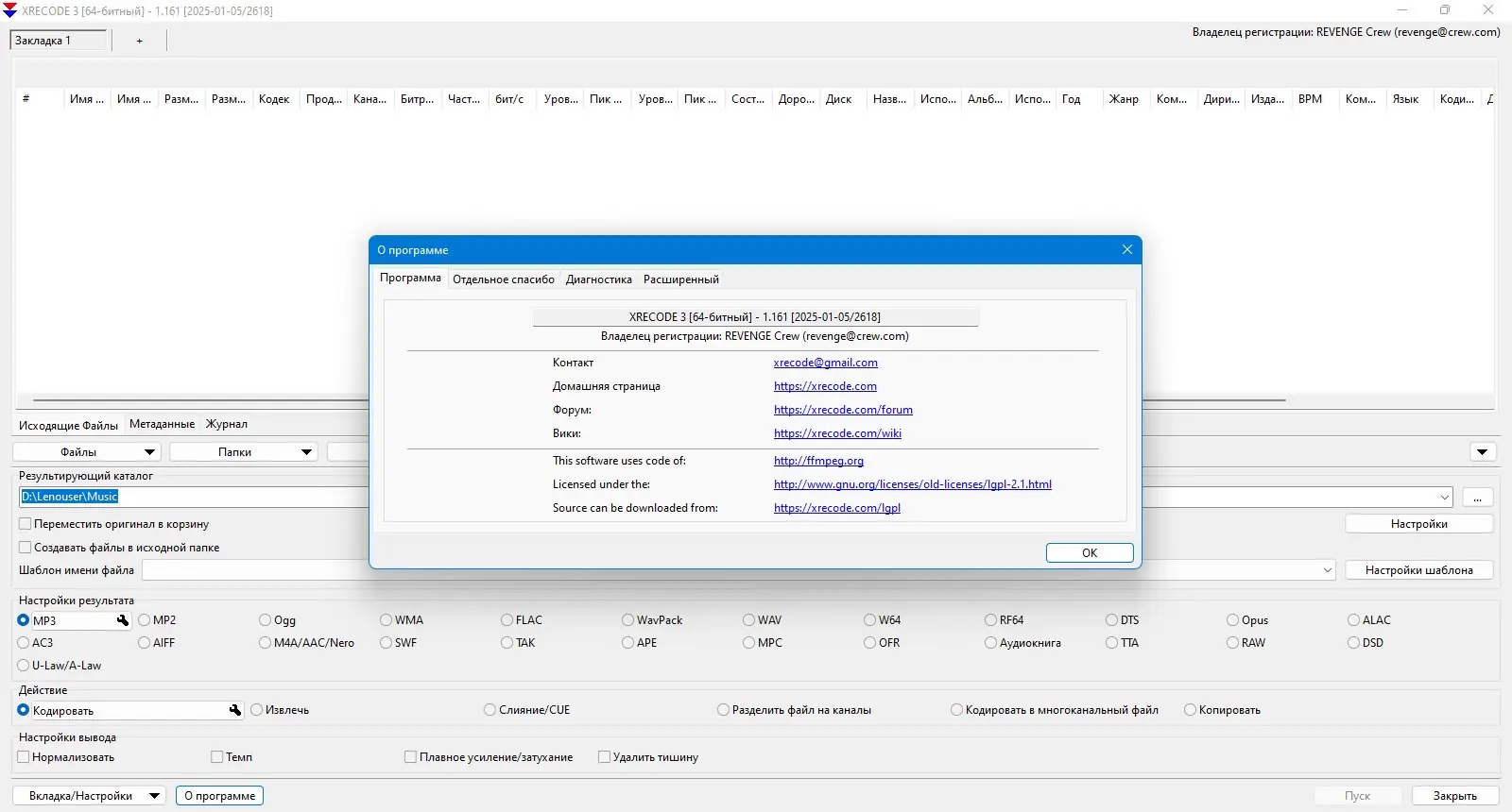 XRecode 3 — это мощный мультиязычный аудиоконвертер для Windows 7, 8/8.1, 10, 11, подходящий как для профессионалов, так и для домашних пользователей. Обладает удобным интерфейсом с функцией «drag and drop», поддерживает большинство популярных форматов, позволяет быстро и без усилий преобразовывать аудиоданные, извлекать звук из видеофайлов и граббинг многоканальных Audio CD. Благодаря возможности параллельного конвертирования нескольких файлов и созданию объединённых аудиофайлов с CUE-скриптами, программа обеспечивает эффективную работу с большими объёмами мультимедийных данных. Встроенный редактор метаданных с поддержкой обложек, возможность работы в портативном режиме и поддержка LossyWav делают её универсальным решением для обработки аудио.