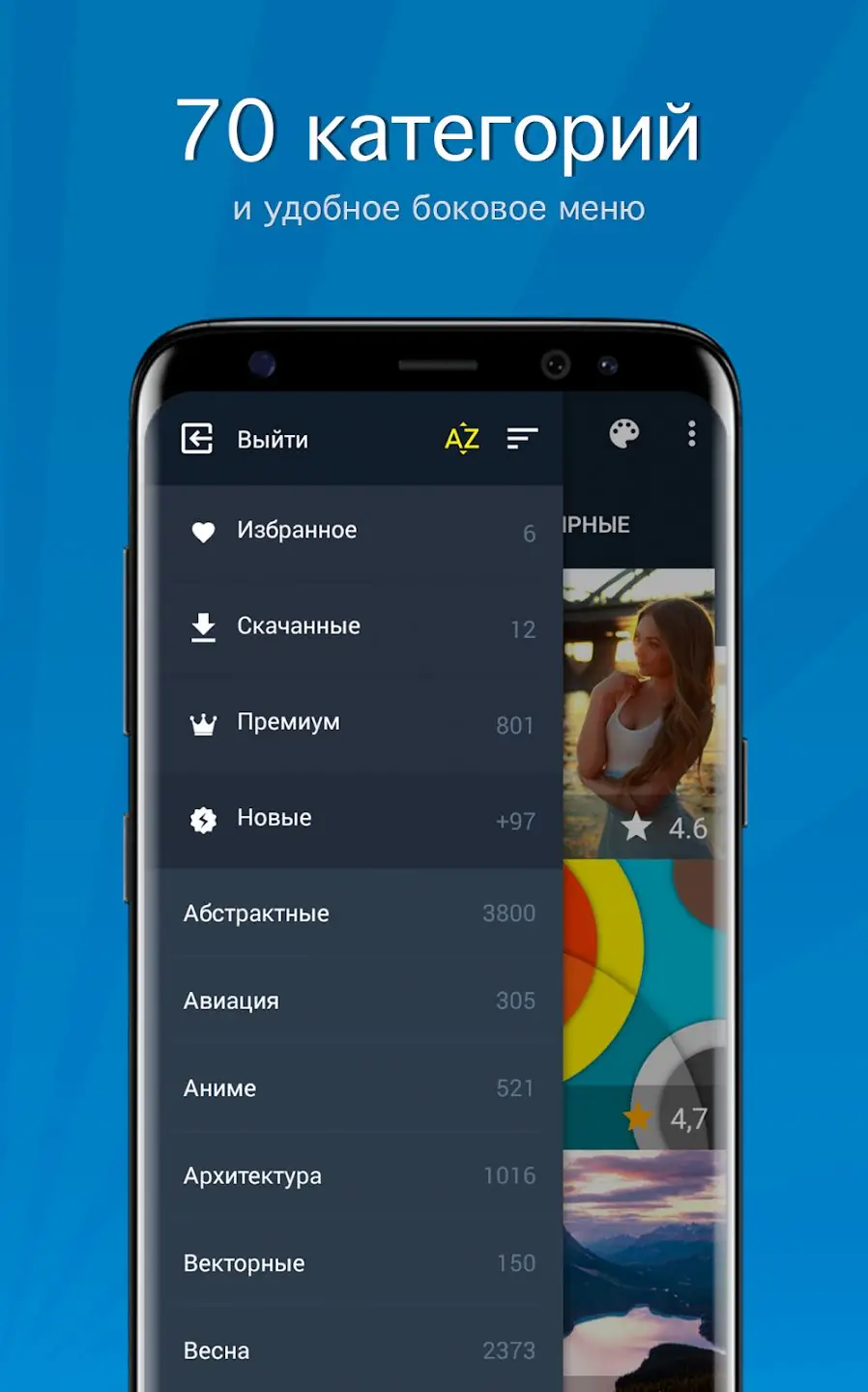 - Обширный каталог более 120 тысяч обоев в высоком разрешении (Full HD и выше)