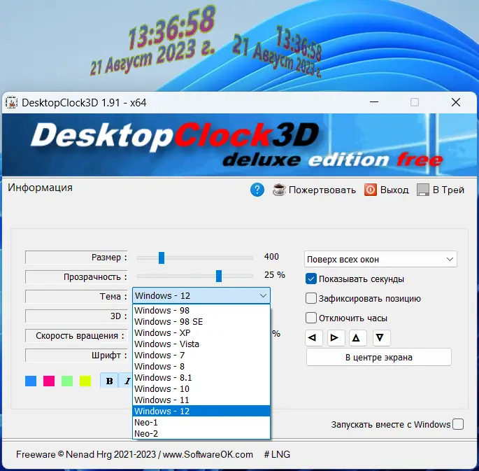 - Опциональная прозрачность часов рабочего стола