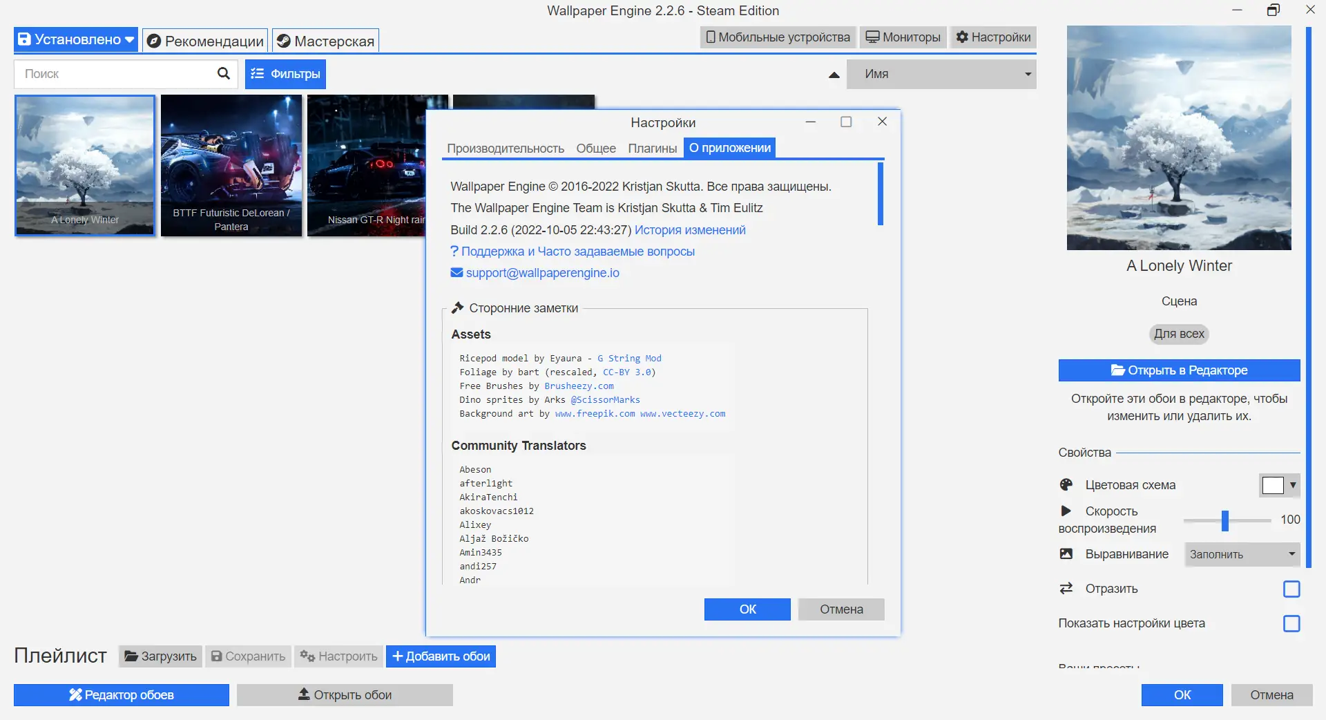 • Интеграция с Steam Workshop для редактирования и обмена обоями.