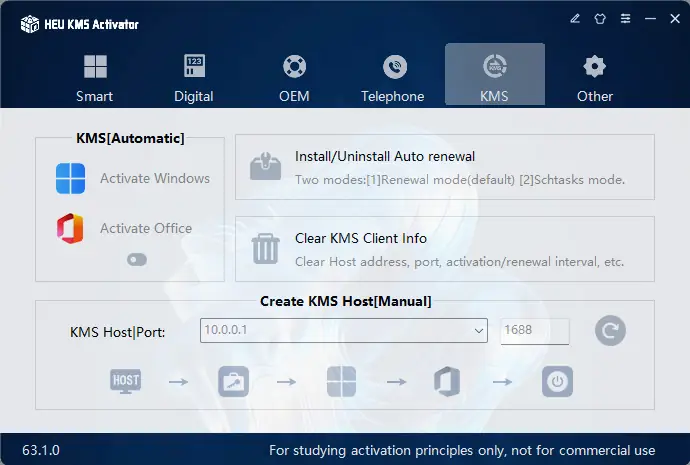 HEU KMS Activator способен активировать Windows XP, Vista, 7, 8/8.1, 10, 11, а также MS Office начиная с 2010 и до 2024 года, включая Office 365. Обеспечивает автоматическое определение и обход постоянных активаций, управление ключами, настройку KMS-сервера и отключение автоматических обновлений. В программе реализованы функции безопасного удаления информации о клиентах KMS и поддержка разных режимов активации, включая цифровую, OEM и интеллектуальную, с возможностью изменения версии операционной системы и управление статусом лицензий.