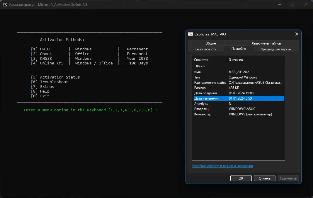 - Запустите PowerShell или файл MAS_AIO.cmd, в зависимости от выбранного метода