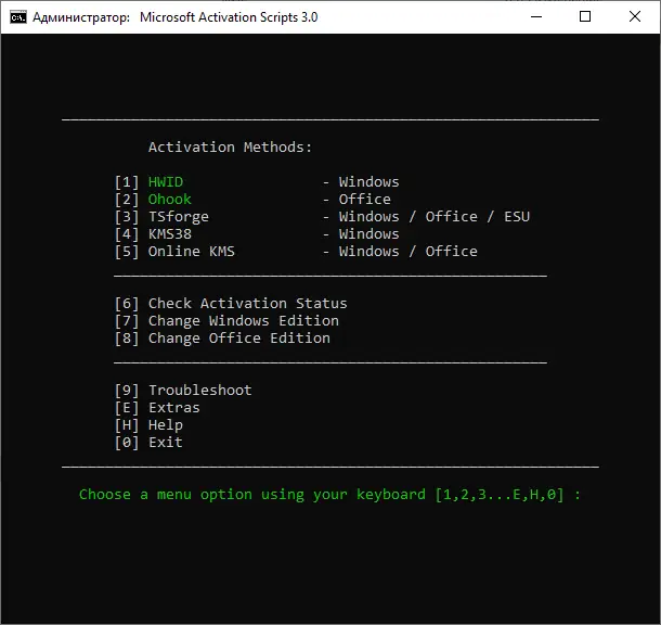 Microsoft Activation Scripts — это универсальный активатор Windows и Office, созданный с использованием современных методов активации HWID, Ohook, KMS38, OnlineKMS и TSforge. Основная особенность программы — открытый исходный код и минимальное обнаружение антивирусными системами, что обеспечивает безопасность и надежность для пользователя. Инструмент позволяет быстро и легально активировать ваши продукты Microsoft без необходимости приобретения лицензии.