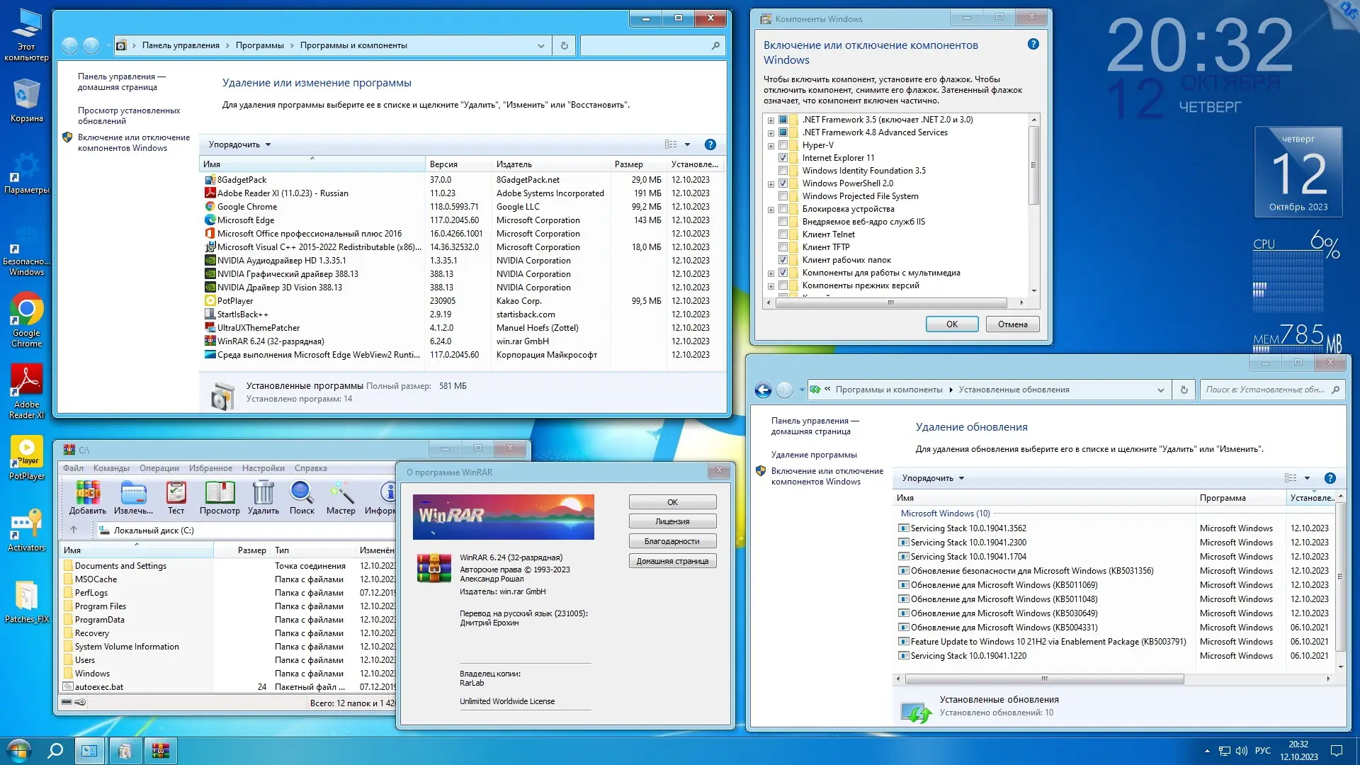Данная сборка основана на оригинальных образах Windows 10 Enterprise LTSC 2021 (Корпоративная версия) с долгосрочной поддержкой до 2027 года. В нее интегрированы важные обновления по состоянию на 11 октября 2023 года, а также комплект классических программ, таких как Office 2016, WinRAR, браузеры, мультимедийные проигрыватели и гаджеты. Система полностью настроена для комфортной работы, с возможностью индивидуальной настройки внешнего вида и функционала. В сборке отключены службы и функции, связанные с телеметрией, автоматическими обновлениями и некоторыми плиточными приложениями, что обеспечивает высокий уровень конфиденциальности и минимальную нагрузку на ресурсы.