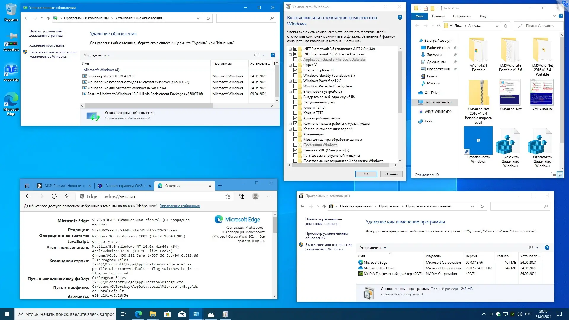 Обновлённые оригинальные образы ОС Windows® 10™ от Microsoft разных разрядностей и редакций, объединённые в 2 образа (x86 и x64). Включают в себя полностью «чистые» не модифицированные версии Windows 10 Pro, Home и Enterprise с интегрированными средствами восстановления и инструментами для диагностики. Образы созданы с использованием стандартных средств Microsoft ADK (DISM), содержат важные обновления по мая 2021 года и обновлённый браузер Edge. Не содержат изменений в системе, что обеспечивает стабильность и безопасность, а пользователю остаётся настройка системы под свои нужды через интерфейс после установки.