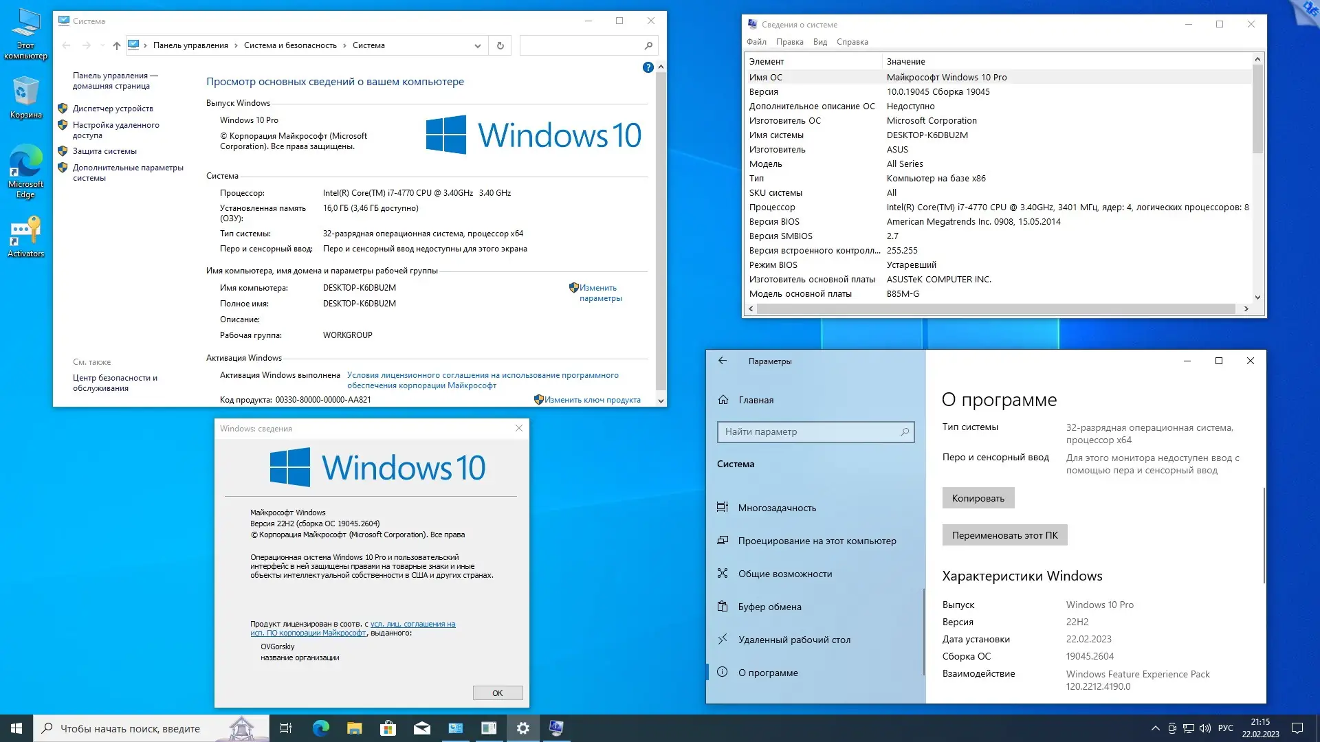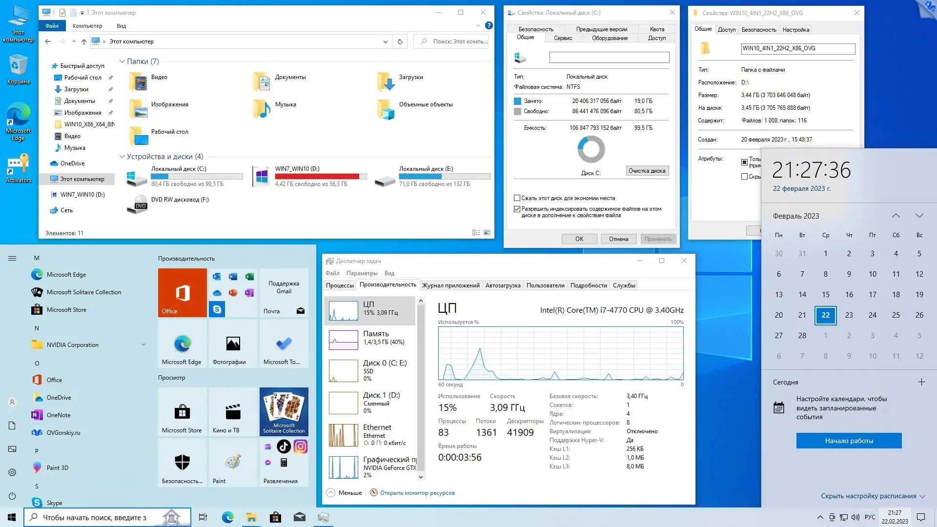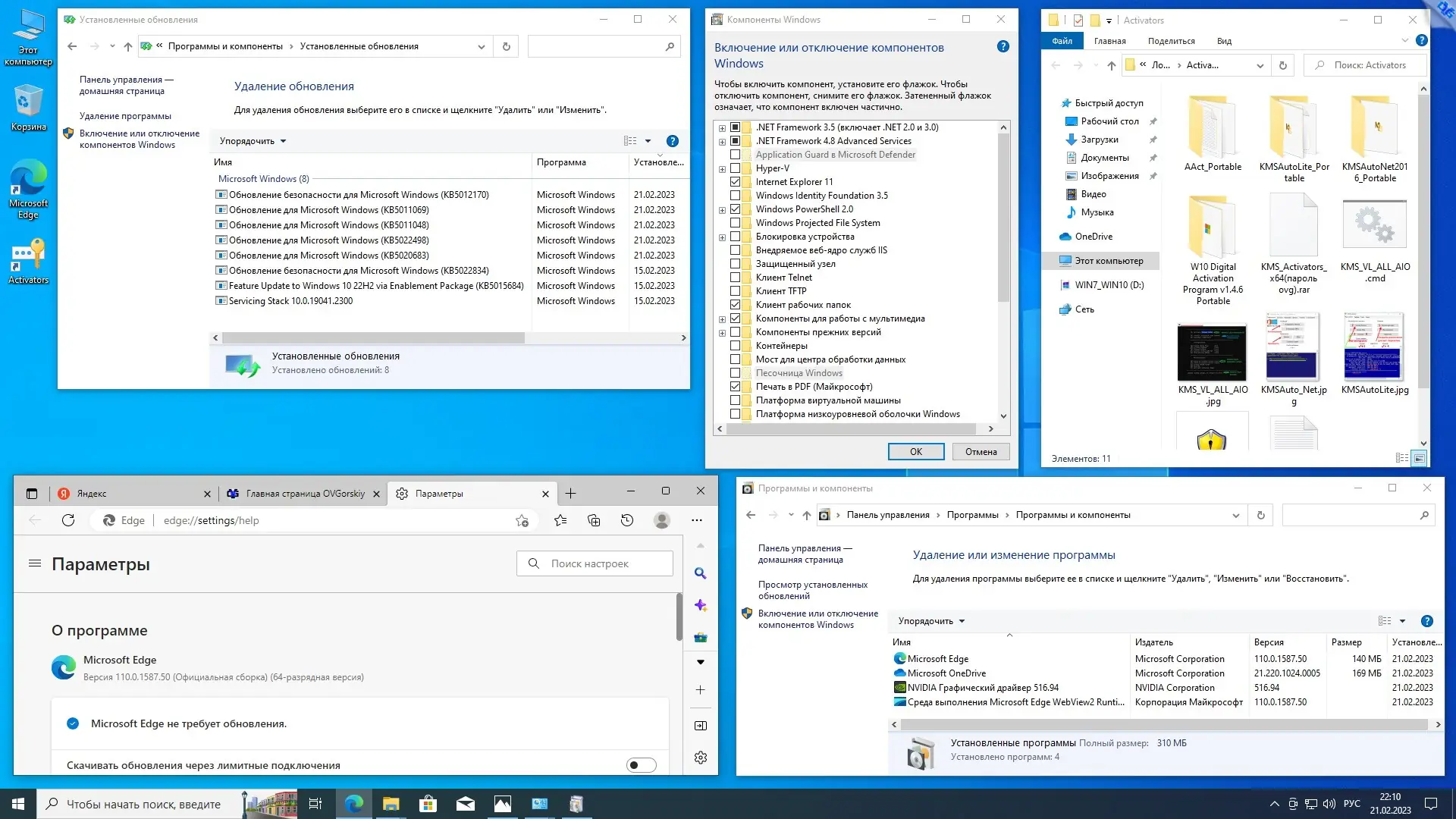 В сборке активно использована русская локализация, и она содержит обновлённые компоненты, включая .Net Framework 4.8.1 и 3.5, браузер Microsoft Edge версии 110.0.1587.50 Chromium, а также инструменты для создания загрузочных носителей. Образы делаются на основе официальных ISO-образов MICROSOFT MSDN, что гарантирует их подлинность и актуальность.