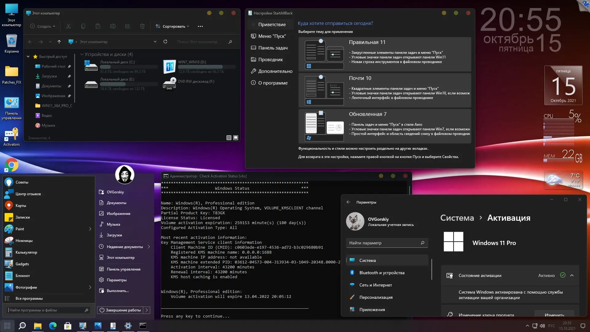 - Встроенная возможность активации системы с помощью KMS активатора или другого легального инструмента.