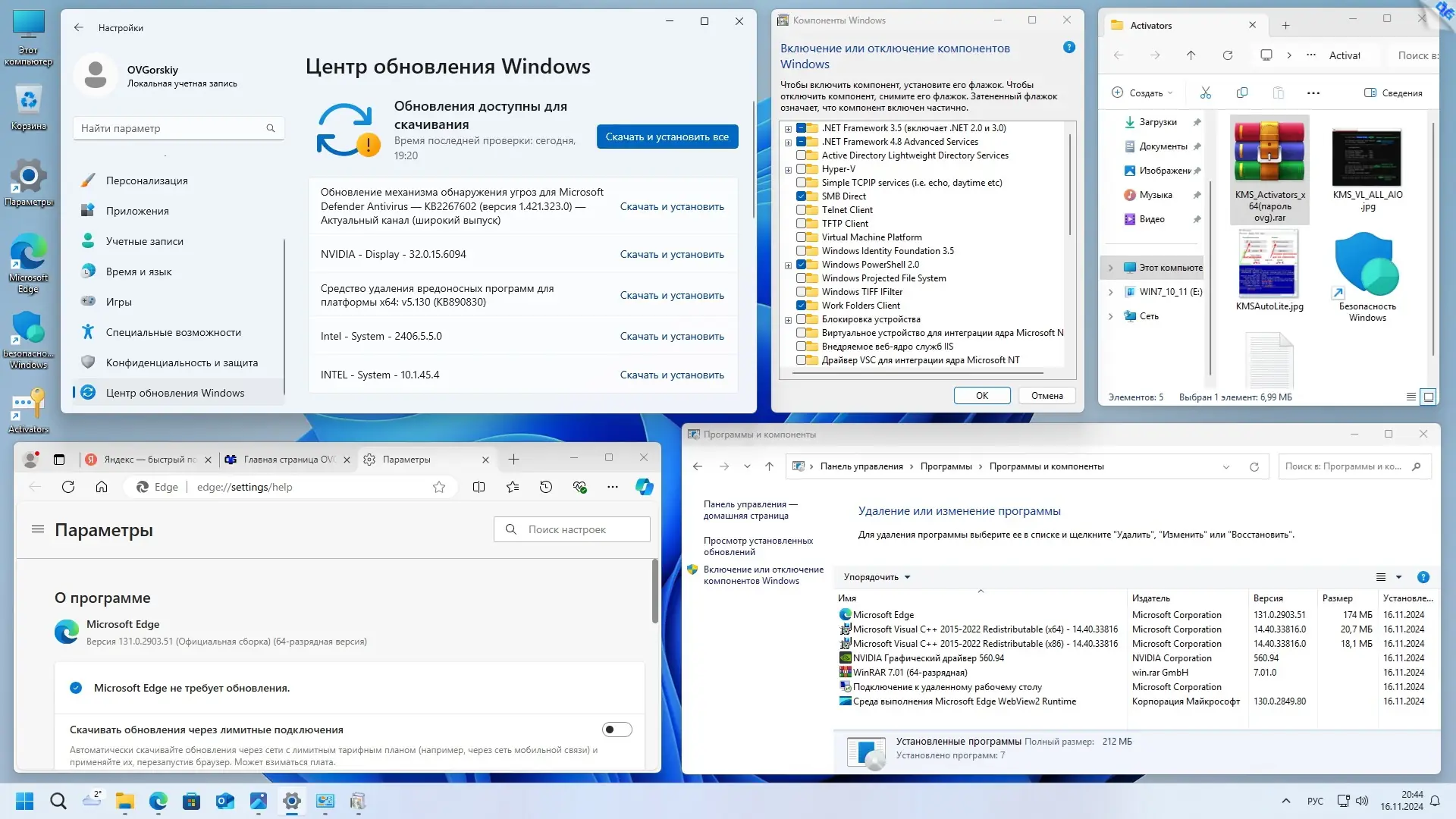 Данная сборка включает редакции Windows 11 Pro, Home и Enterprise x64, с обновлениями по состоянию на 12 ноября 2024 года. Образы созданы стандартными средствами от Microsoft ADK (DISM) и основаны на оригинальных образах MSDN. В системе реализованы обходы системных требований, разблокирована установка на неподдерживаемые компьютеры, а также отключение обязательного подключения к интернету при установке и обновлении. В образ добавлены инструменты для ремонта, восстановления и работы с ОС, включая MSDaRT. В качестве бонуса — обновленный браузер Edge, предустановленный архиватор WinRAR и компоненты Visual C++. Всё это обеспечивает пользователю максимально чистую и безопасную систему, готовую к дальнейшей настройке под личные предпочтения.