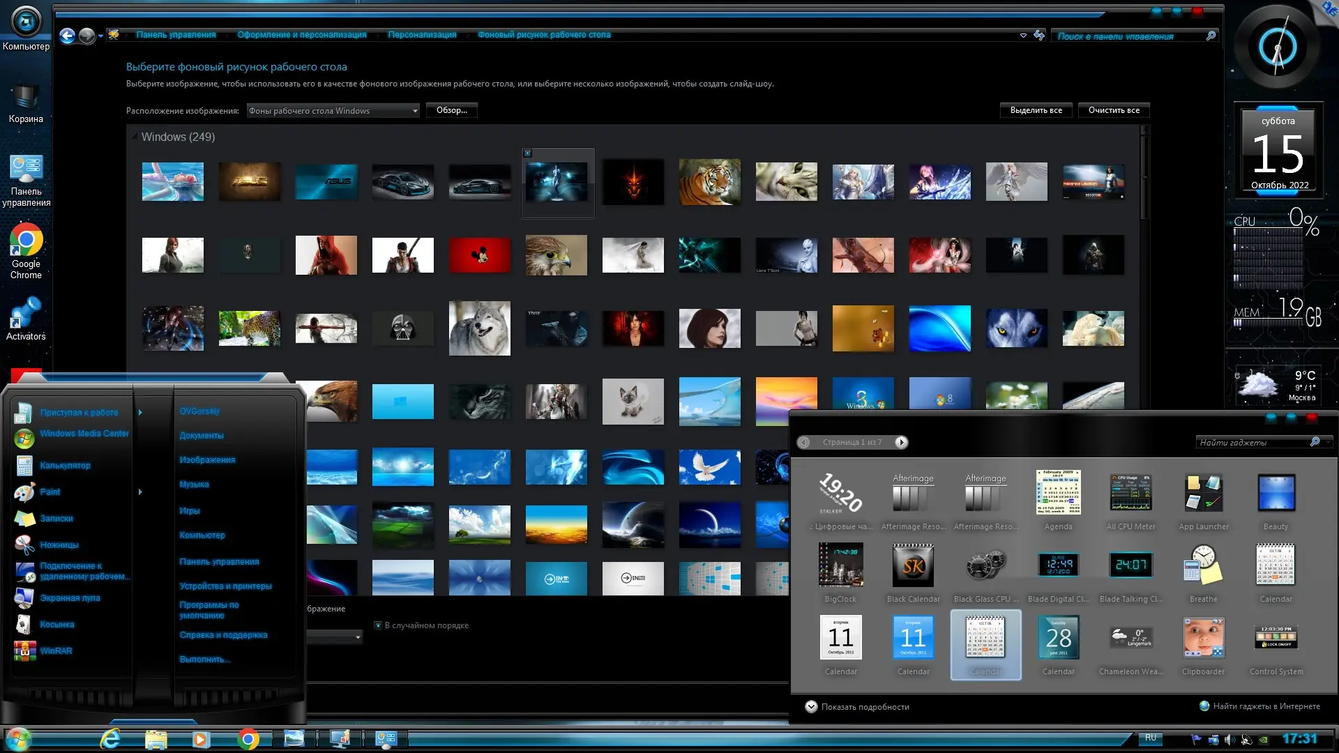 - Добавление дополнительных фоновых изображений, тем оформления и гаджетов для персонализации системы.