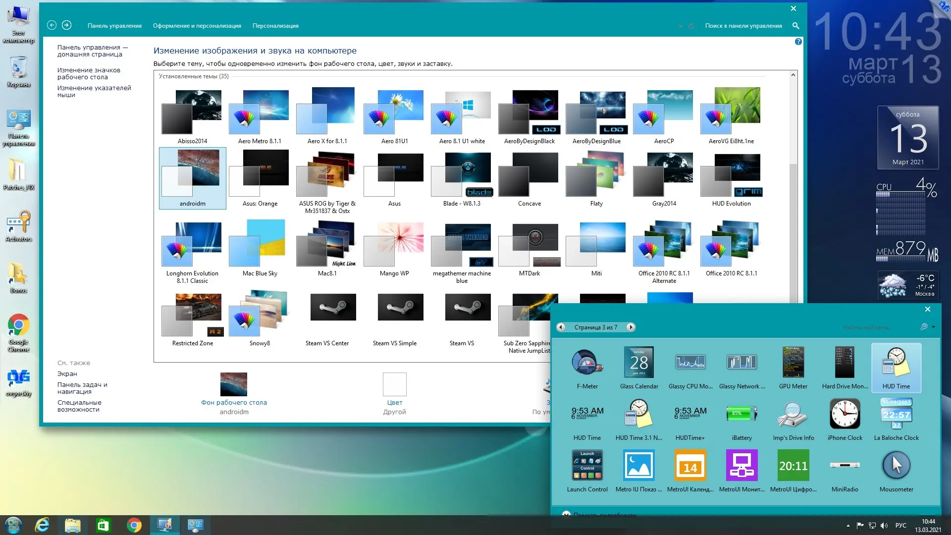 - Добавление дополнительных фоновых изображений, тем и гаджетов для персонализации системы.